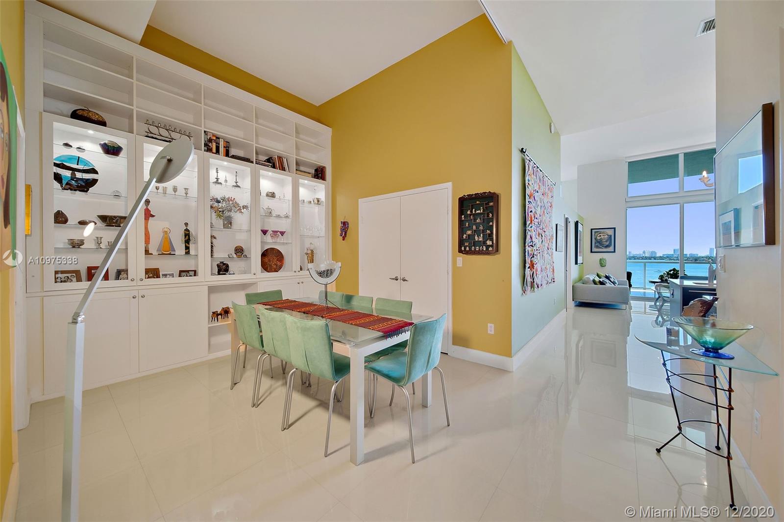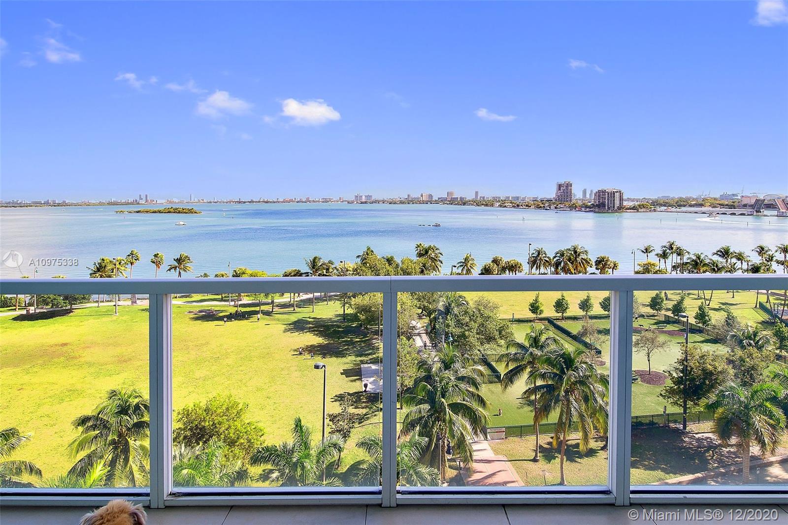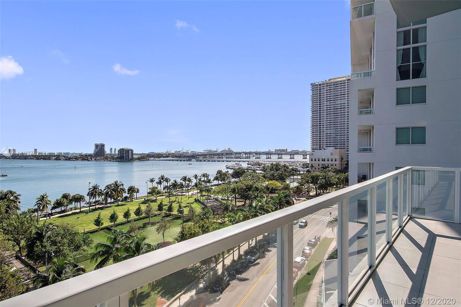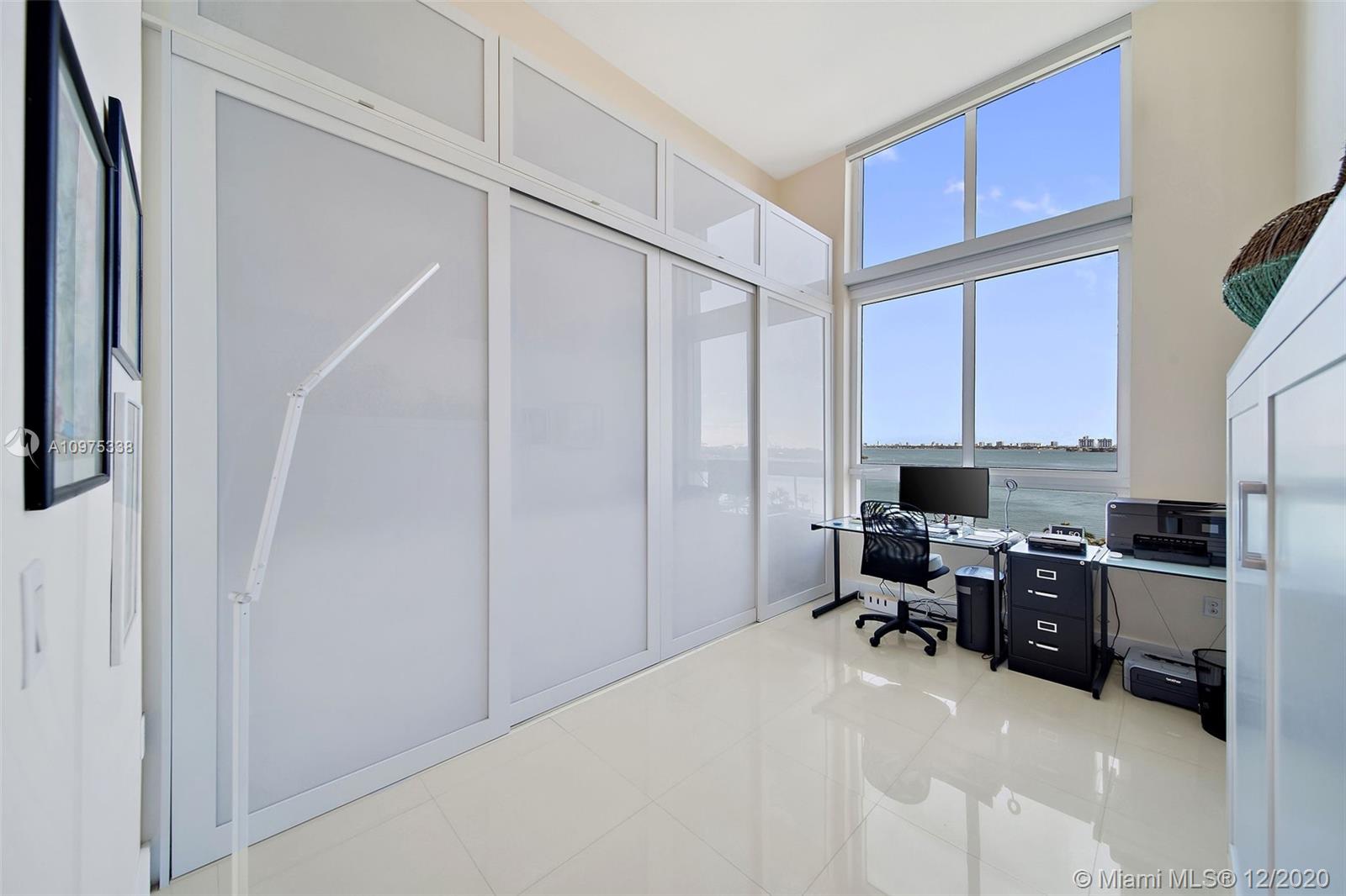 Gorgeous shimmering unobstructed and truly outstanding direct bay views from this rare coveted loft style residence with soaring 13 FT ceilings at Quantum on the Bay. Watch beautiful sunrises and sailboats while you sip your morning coffee on your oversized balcony. Spacious open floor plan with 2 bedrooms plus den, guest bathroom, porcelain tile flooring, oversized impact glass windows with electric shades, custom built in cabinetry and walk-in closets. Parking convenient to direct floor level. Full service secure building with fully equipped fitness center, billiard room, 2 pools and cyber library. This unit overlooks the 8 acre Margaret Pace Park on the bay in Edgewater. Fabulous location, walk to many shops and restaurants nearby including Publix, museums and more.