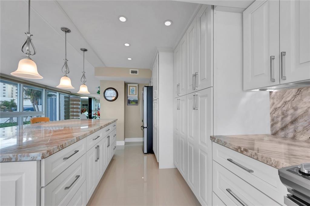 Million Dollar, full oceanfront views visible from every angle in this beautiful condo. Wake up to breathtaking sunrises, just steps away from the private beach. One of the few largest corner units, with wrap around balcony and unobstructed views of the ocean. Immaculate, fully renovated two-bedroom, split floorplan with 2.5 bathrooms, walk-in closets and an abundance of natural light with floor to ceiling impact windows. Gourmet kitchen offers an 8 FT island with lots of storage and a washer and dryer inside the unit. High end rectified porcelain tile flooring throughout with finishes in neutral tones. Amenities include pool, tennis courts, sauna, jacuzzi, gym, ballroom, 24-hour security, covered parking garage and a storage unit. Corner units rarely available. MUST SEE!