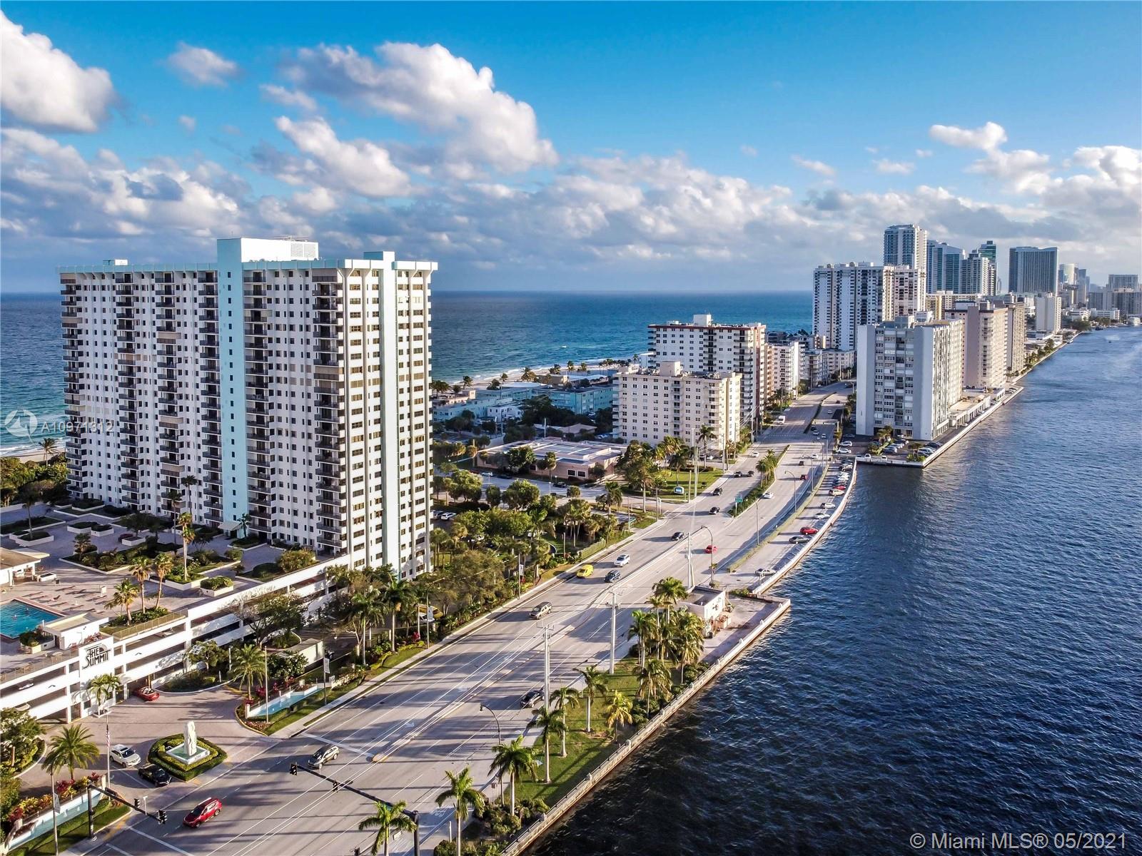 Bright spacious Penthouse. Enjoy beautiful Sunrise & Sunsets, direct water views from large terrace. Perfect move in condition. Beautiful updated kitchen, granite countertops. 2 Master BR, both have large walk in closets, 1st Master step in shower, 2nd Master has Tub/shower combo, both have some ADA Compliant features. Newer A/C. Washer/Dryer in unit. ACCORDIAN SHUTTERS w/ Shoji screens Window sliders. Addt'l storage. 2 assigned PKg spots. Mo. Maint $875 Restaurant on pool deck. Please read Supplemental & Broker remarks for REGULATIONS FOR REAL ESTATE AGENTS, 2 Pools, Tennis, Centrally located to airports, Shopping, Casinos, restaurants, Steps from Hollywood Boardwalk. Showing reserved for Mon– Fri 9 – 5 & Sat 9- 2 pm. Emotional support pets allowed