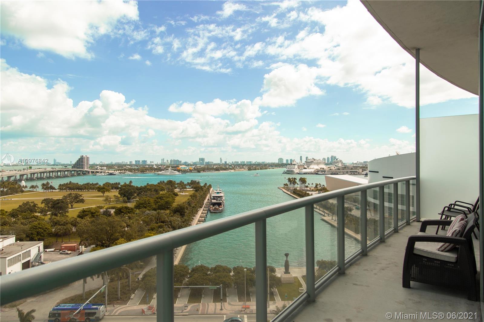 Extra high ceilings corner condo delivering stunning sunrise views and partial sunsets. The floor to ceiling windows wrap around the apartment, filling the space with natural light throughout. This is a great 2/2 split floor plan offering each room in its own wing and both with its own walk-in closet. With only 4 apartments per floor, this residence offers privacy & delivers with great building amenities such as two pools, gym, jacuzzi, volleyball court and more. Also includes a 5x5 storage.