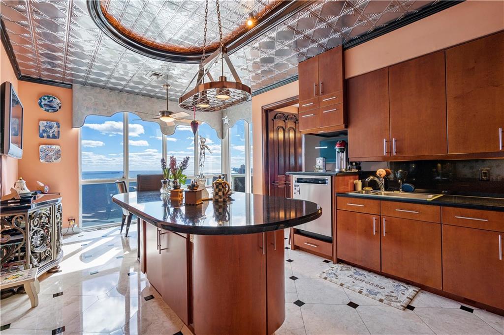 Southeast Ocean Grand Penthouse at L'Hermitage. A Regal Palace in the Sky! Largest available on highest floor of complex. Over 7,000 square feet of living space w/ 6 separate balconies. All encompassing 270 degrees of breathtaking views for sunrises, sunsets, city views, coastline views, intercoastal views. 11' ceilings, private elevators, recently upgraded HIGH IMPACT windows and doors throughout. 6 bedrooms, 6.5 baths, 2 kitchens, formal office, extra storage, separate entrances for large families that want their own living areas. 3 Prime parking spaces included! This one of kind magnificent unit is a must see. L'Hermitage is over 10+acres resort style living with a 2.5 acre pool deck, café, pools, spas, saunas, steam, attended beach, pets ok