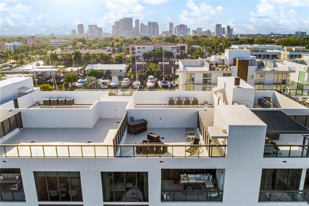 WATERFRONT PENTHOUSE W/DOCKAGE & PRIVATE ROOF TOP TERRACE. Fort Lauderdale waterfront living at its finest walking distance to world famous Las Olas Blvd. Contemporary flow thru unit, 2 large balconies, 10' ceilings, floor to ceiling impact windows & doors. Step from the elevator into your private foyer. Outstanding views of the waterway, multi-million-dollar homes, resort style pool, & private docks. Open kitchen with 6 burner gas range, wine refrigeration & large center island. Bright open floor plan conducive to today's lifestyle. Spacious master suite. 3br, 2fba, 2 garage spaces (electric car ready) & dockage for a 35' boat. Walk to shops, restaurants & the beach.