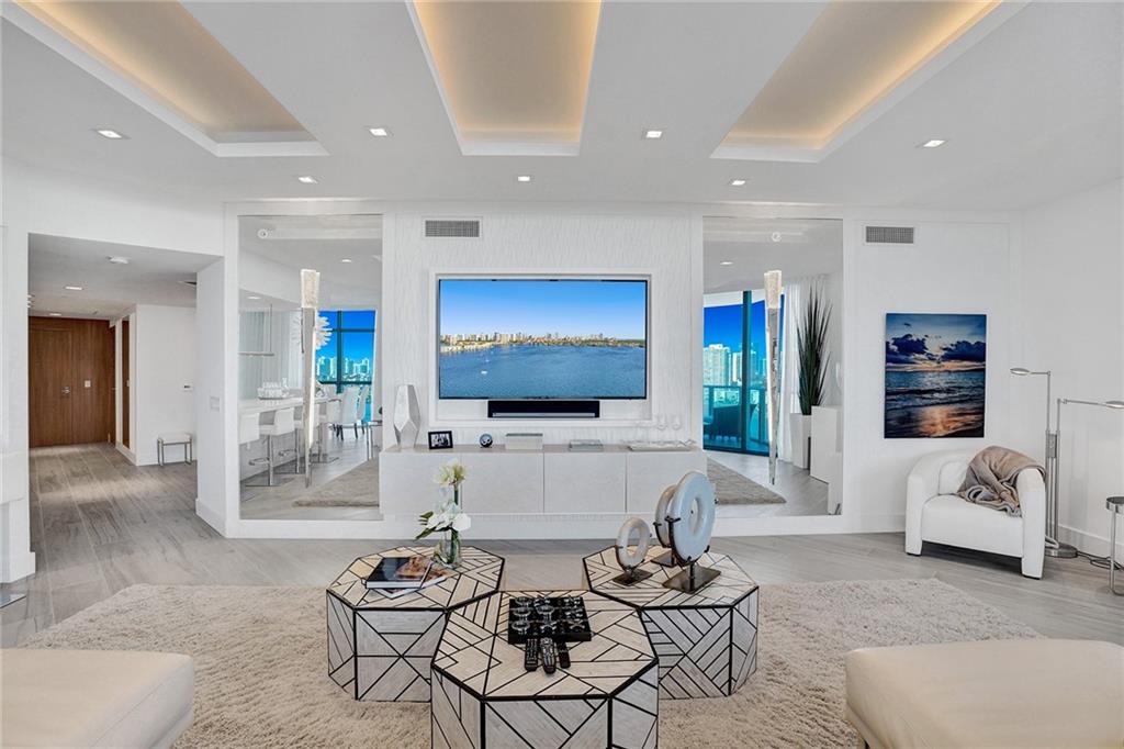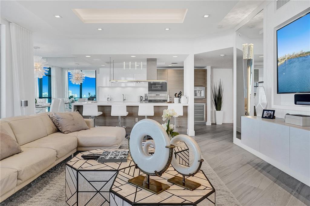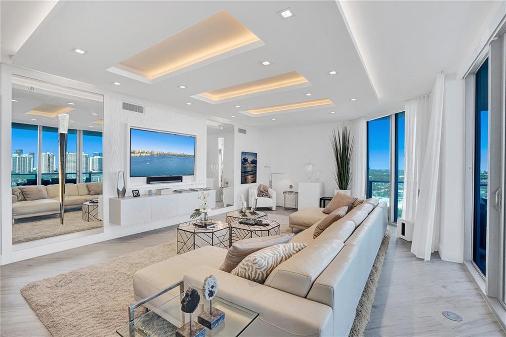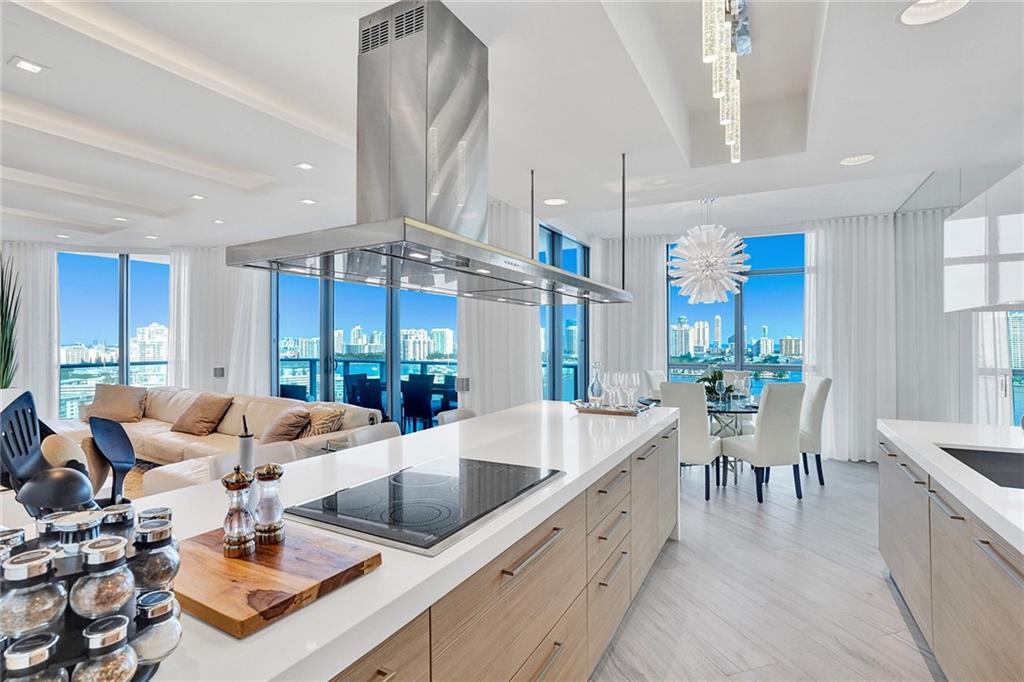 Magnificent fully furnished turnkey 3 bed, 3.5 bath + den decorated by award winning interior designer Steven G. Luxury finishes such as Porcelanosa tile, Italian doors, recessed/uplighting, motorized shades, custom feature walls, modern decor, art and lighting fixtures. Imported Italian kitchen cabinetry, Sub-Zero & Wolf appliances, wine cooler, Gaggenau coffee maker & quartz counters. Corner unit with glass railings for expansive skyline, bay & ocean views. Marble master bathroom with a soaker tub & floating vanity. Converted den/office for additional living area. Full service 112-slip marina & yacht club with berths for yachts up to 90 feet. 5-star Gated community with concierge, valet, fitness center, pool, steam room, kids area & clubroom. Pet friendly. *Exclude Sonos sound system*.