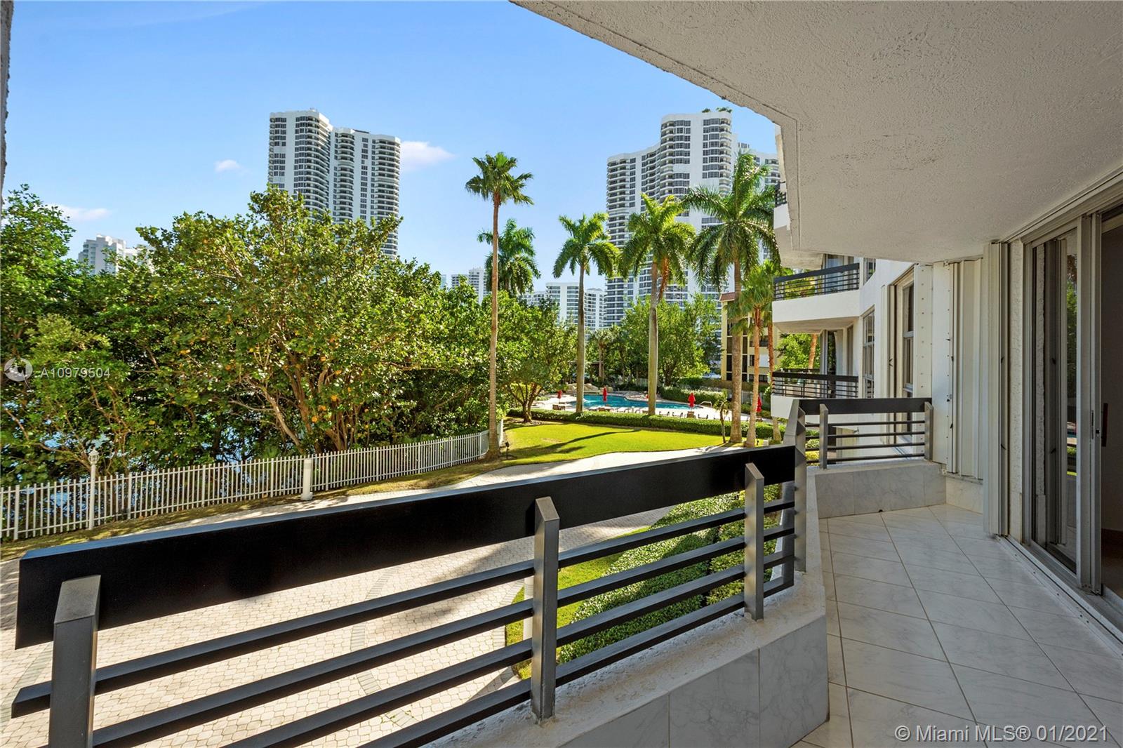 First time on the market; original owner unit has been impeccably maintained and upgraded. Pride of ownership is evident throughout. Unit boasts large terrace overlooking resort-styled pool and partial water views of bay, porcelain tiles throughout, accordion storm shutters, renovated kitchen with hardwood cabinetry/granite counters, stainless steel appliances, upgraded electrical panel, newer AC (2018), front-loader W/D (2014), split bedrooms, all closets have extra storage space, renovated baths w/ glass enclosures and a storage unit and assigned parking on unit's floor. Full amenities including resort-styled pool area, modern gym and playroom, pet friendly and may rent right away. Minutes to beach, walking distance to golf course, Aventura Mall, restaurants, parks, stores. Must see!