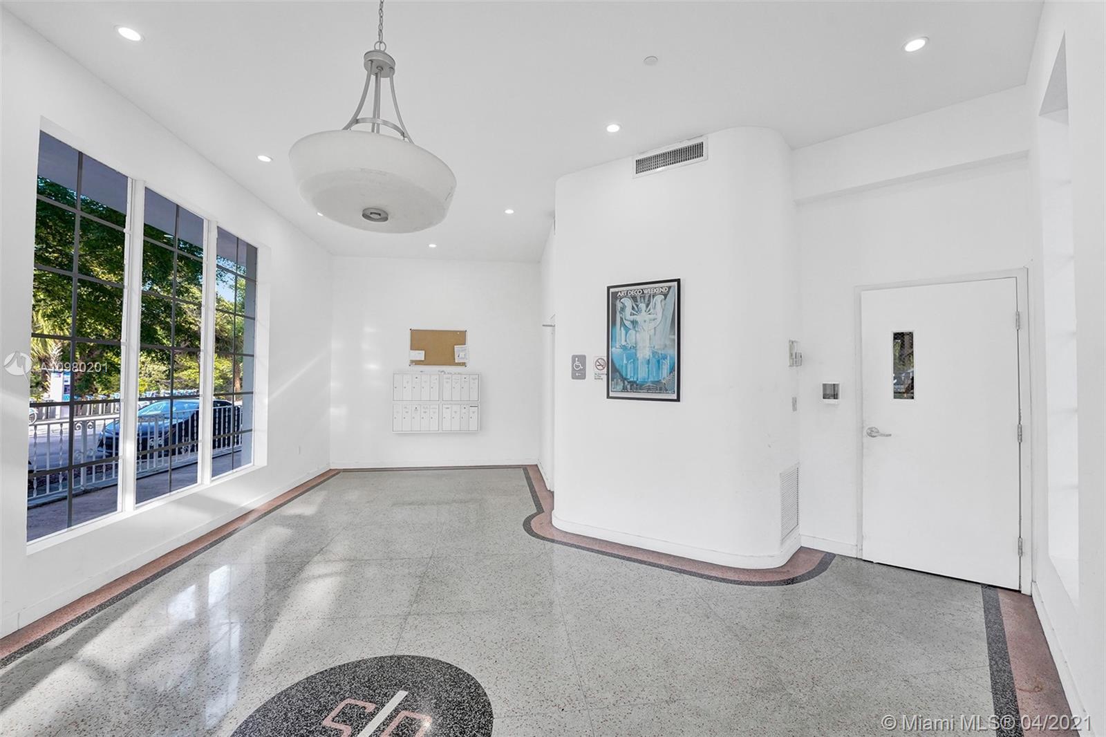 Perfectly located Studio for sale in the heart of Miami Beach, right across the BRAND NEW Miami Beach Convention Center. Corner renovated Art deco building, has now been transformed into a SHORT TERM RENTAL FRIENDLY property (NO RENTAL RESTRICTIONS), handicap accessible as well. Unit is on the second floor, hallways have brand new wood floors. Unit has high ceilings, natural light flowing through, large living space with with closets, central a/c AND washer/dryer inside! Easy to rent short term or long term, no special assessments either! Close distance to the convention center, ocean, Collins Park, delicious restaurants and amazing hotels.