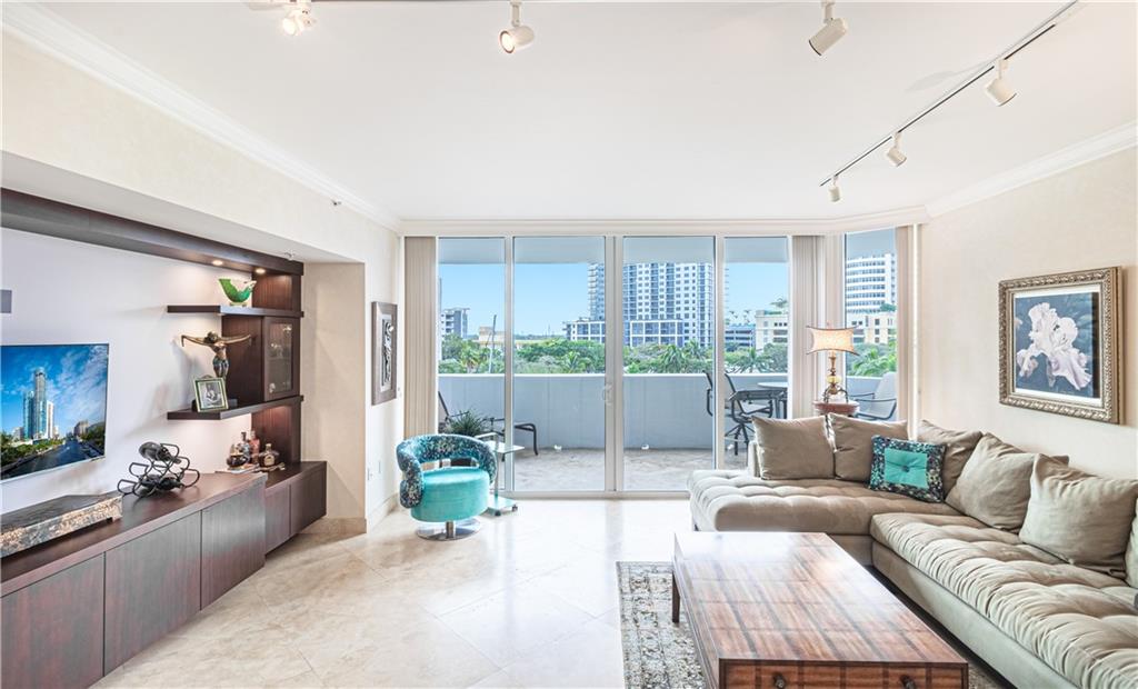 Rarely Available! This is your opportunity to own the perfect pied-à-terre, right on the river, located in the heart of Las Olas and in downtown Fort Lauderdale’s premier luxury highrise. This one bedroom one bath residence features open living spaces, saturnia floors throughout, floor to ceiling glass windows in every room, marble moldings, custom wall unit, large open kitchen w/ breakfast bar, granite countertops & back splash, newer stainless appliances, mosaic tiles, marble bathroom w/ large vanity and storage, built in closets & large covered terrace with unobstructed river views. Assigned parking on the same level, walk right from your car to your unit, or valet! Building features 5 star lifestyle plus 4M renovation is underway with no assessments! Upscale Urban living at its best!