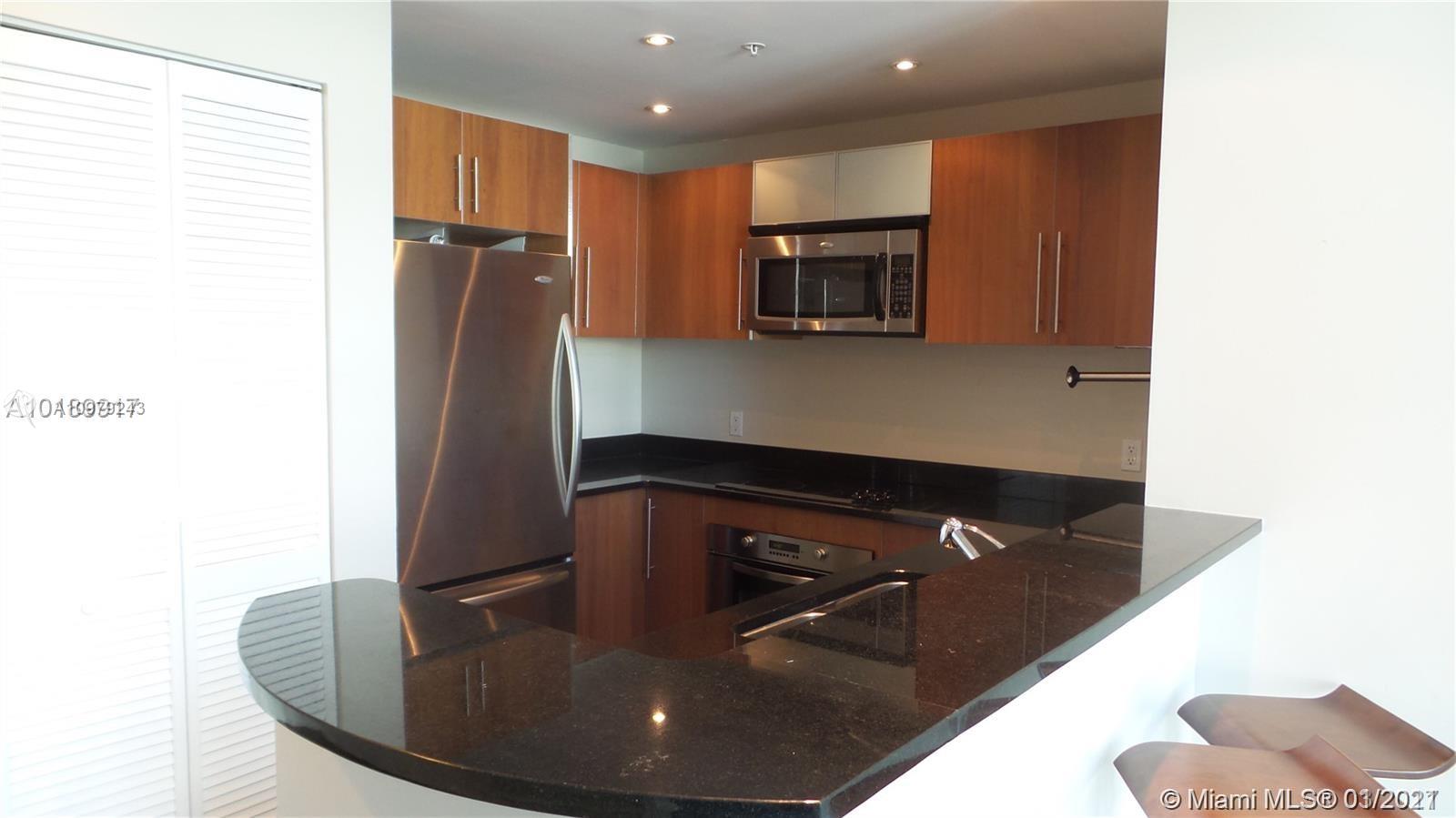 Two story loft unit at Met1 Tower in Downtown Miami - 1Bed/1.5Baths + Den with gorgeous views of water and skyline. Open concept kitchen, Italian cabinetry, granite countertops, SS appliances and washer/dryer. Extra storage space. Enjoy water and city views from your ample balcony. Assigned parking space on the same floor - don't have to enter through the lobby! Pet friendly building. Impact windows and sliding glass doors designed to meet hurricane codes. The Met 1Tower offers high security and top of the line amenities with lobby and valet service, pool & spa, fitness center with stunning water view, game room and more. Water, cable & Internet included. Walk to Metromover, Whole Foods, shops, movies & restaurants.