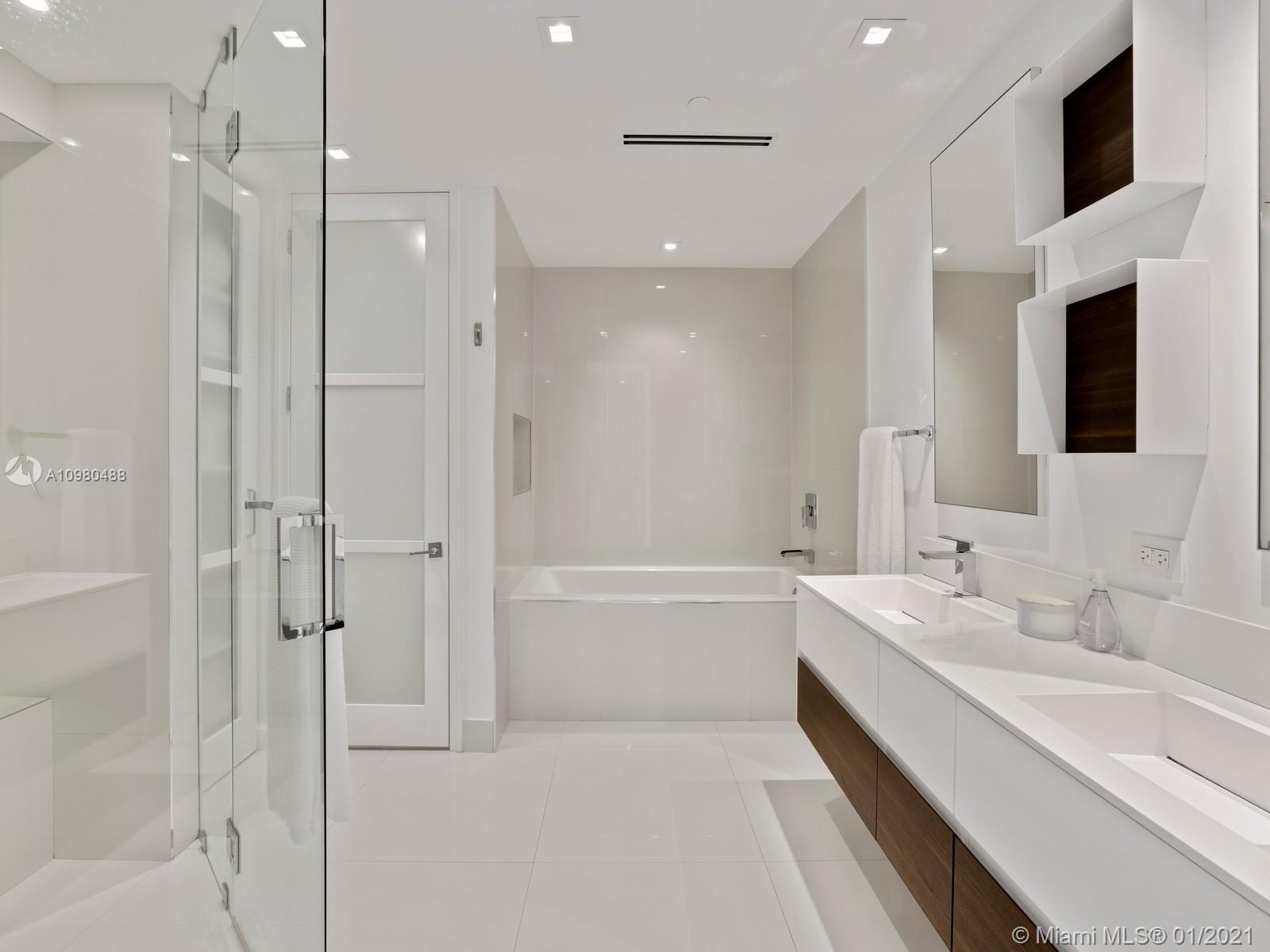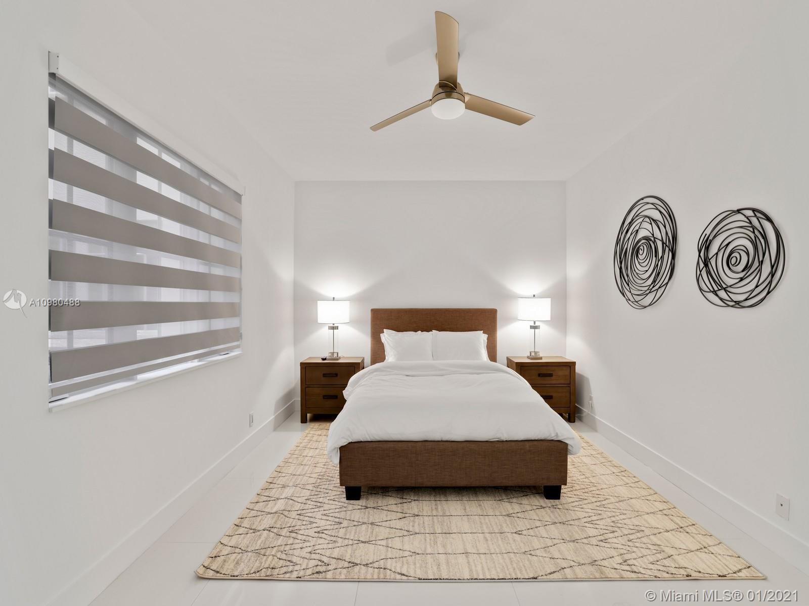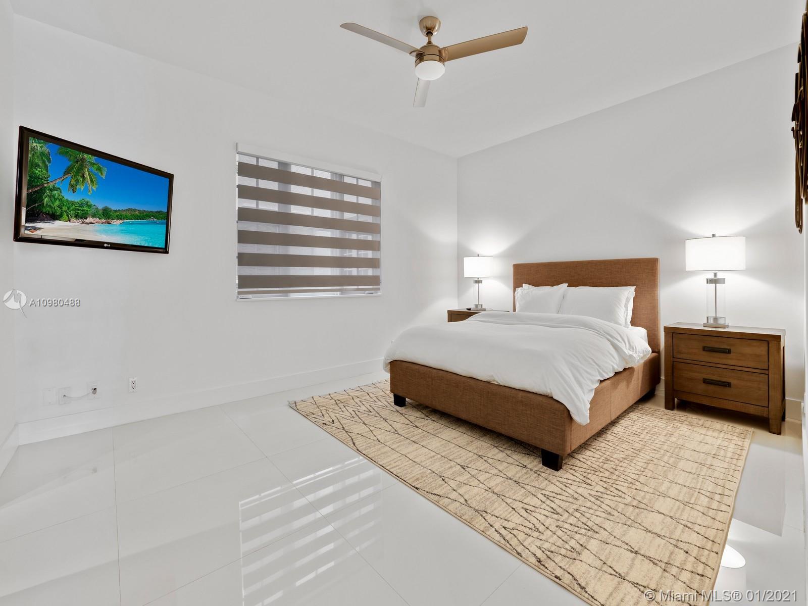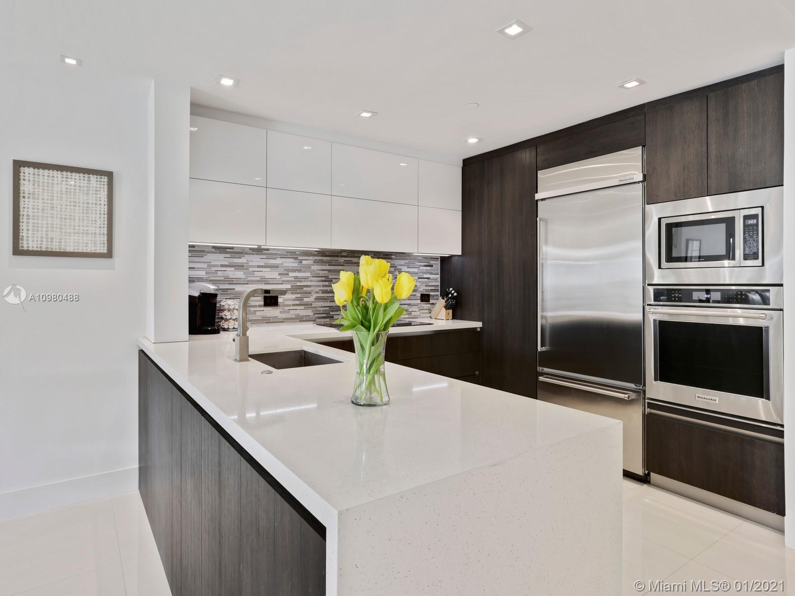 Modern renovation offered fully furnished w/ brand new contemporary décor. White, bright open floor plan w/ chic Italian kitchen and master bath. Desirable ground floor location next to the Beach Club, Spa, tennis courts and members’ beach. The ideal floor plan in this pied-a-mer for personal occupancy and short or long term rental. Boasts 1 garage parking space, storage room & golf cart. Perfect move-in condition - start enjoying the lifestyle of Fisher Island immediately.
