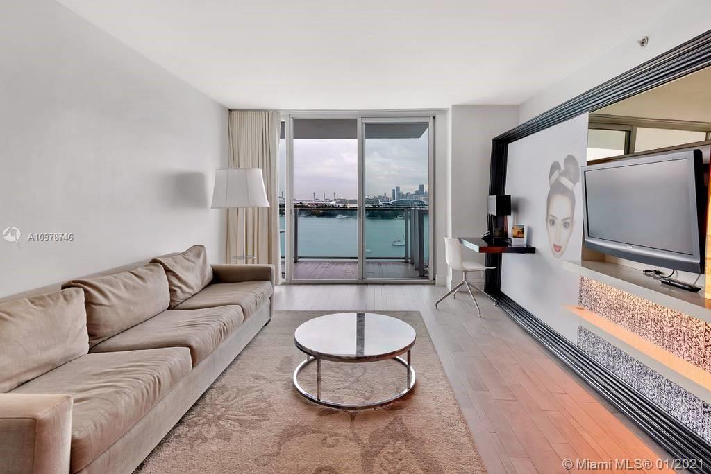 Enjoy spectacular views of Star Island, Biscayne Bay and Miami's skyline from your own private balcony! This corner 2bed/2bath residence offers pampered hotel lifestyle in the most attractive line at the Mondrian! Furnished, the unit can be rented daily, weekly, monthly - no restrictions! Great for both private use and/or rental. Enjoy Baia Beach Club with 2 fully staffed pools & inviting cabanas with food and beverage service, state of the art fitness center, spa/salon, 2 bars, indoor & outdoors dining options, concierge, 24/7 security, private marina with boat dockage. Valet parking space included. Located on West Avenue across from Whole Foods and a few blocks away from South Beach and its finest dining. Live in one of Miami's most trendy, 5-star condo-hotels. Unbranded video available.