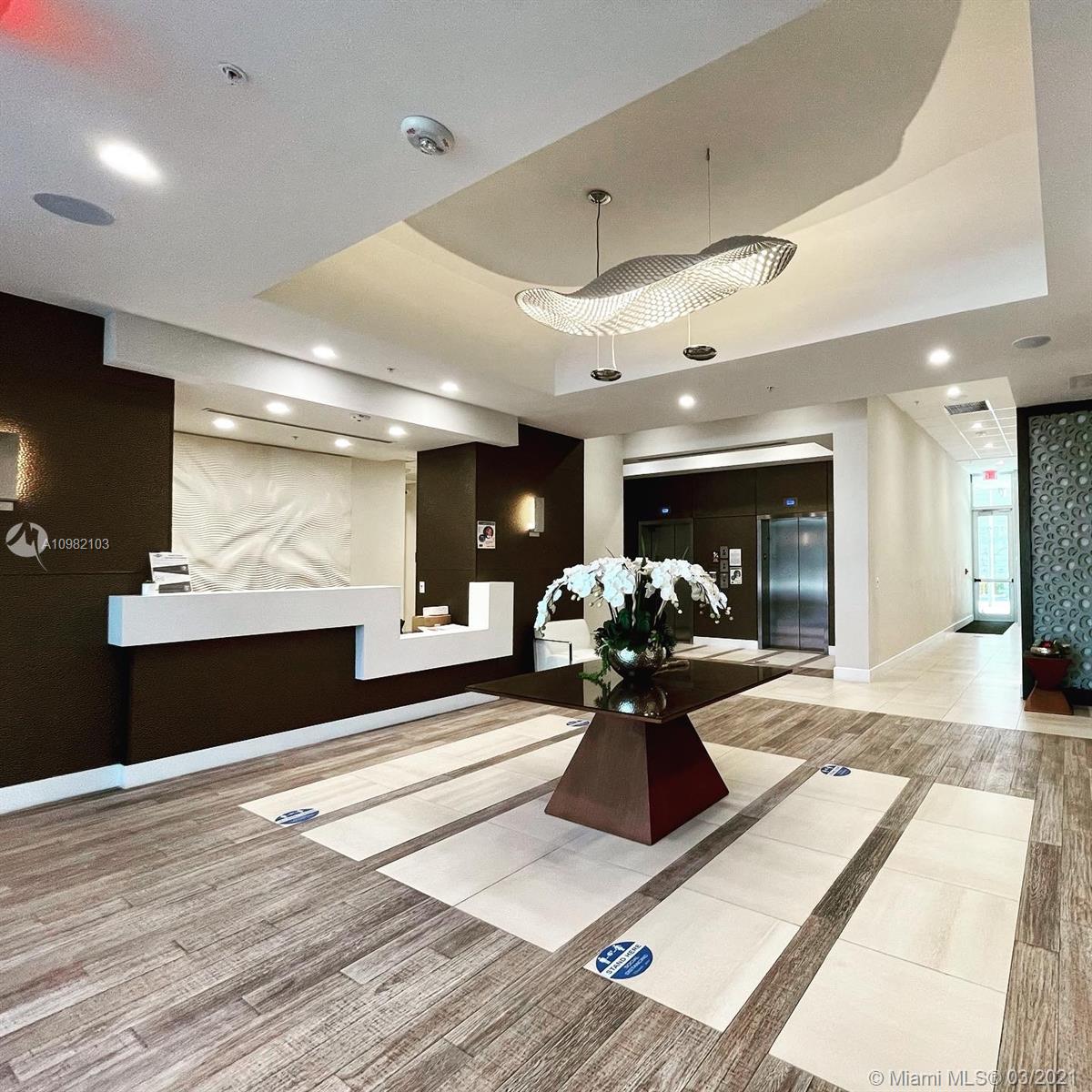 Great opportunity! Luxury Condo 1 Bed/1 Bath like new in rapidly growing area of Doral, with excellent restaurants, business and shops on ground floor. Unit features with latest and smart wiring technology. European kitchen cabinetry with elegant quartz countertop and backsplashes and premium self-closing drawers and designer hardware. Subzero refrigerator & Bosch S.S. appliances and energy-efficient central heating and A/C. Private terrace with plenty of room to enjoy and views at next Clubhouse building. 24/7 concierge services. HOA maintenance includes High Speed Internet, Cable, Water and Trash. You must see it!
