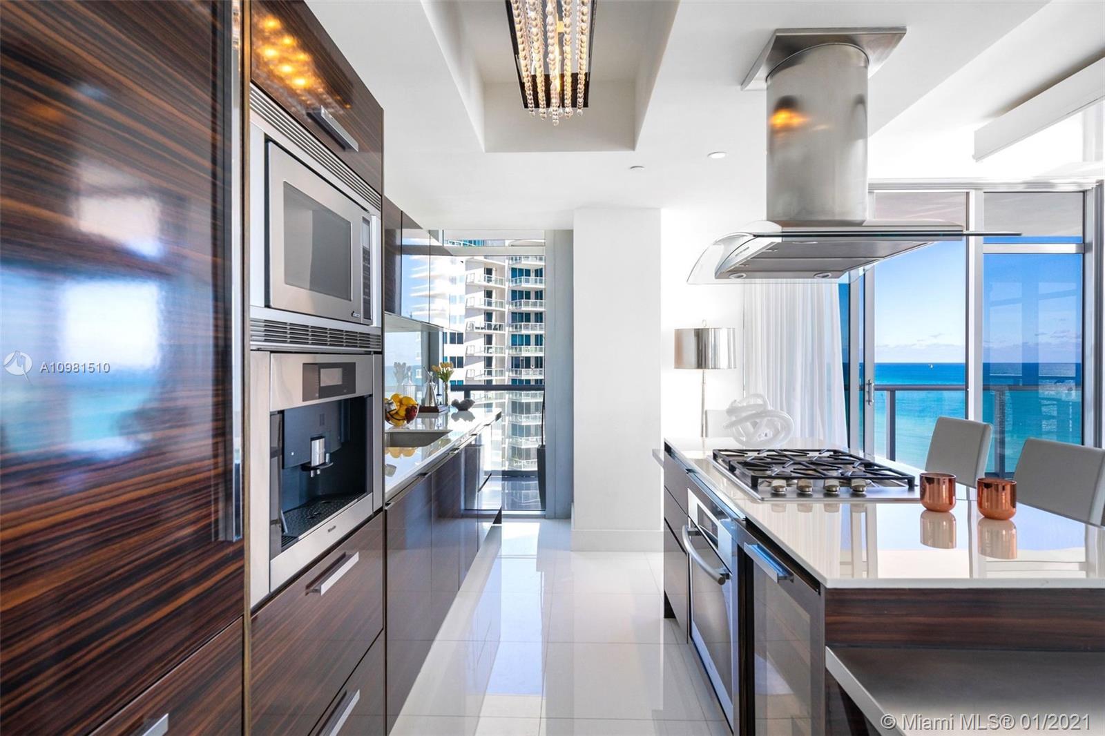 VIEWS FOR DAYS! Watch the sunrise in the morning and set in the evening from your private oceanfront wraparound terrace, with direct beach views with access from every room. This 3 bedroom, 2 ½ bathroom is meticulously decorated and ready for move in. The open kitchen boasts a dining island, gas stove and high end appliances made by Miele and Subzero. The detail extends to the gorgeous lighting fixtures - each one different highlighting the room it is in. There is also a laundry room with extra storage space. The Caribbean is located in the Faena District, one of Miami Beach's most coveted spots. The building has fantastic amenities including full time service and security, luxurious pool, jacuzzi, full beach service, gym, cigar humidor, wine locker, business center and media room.