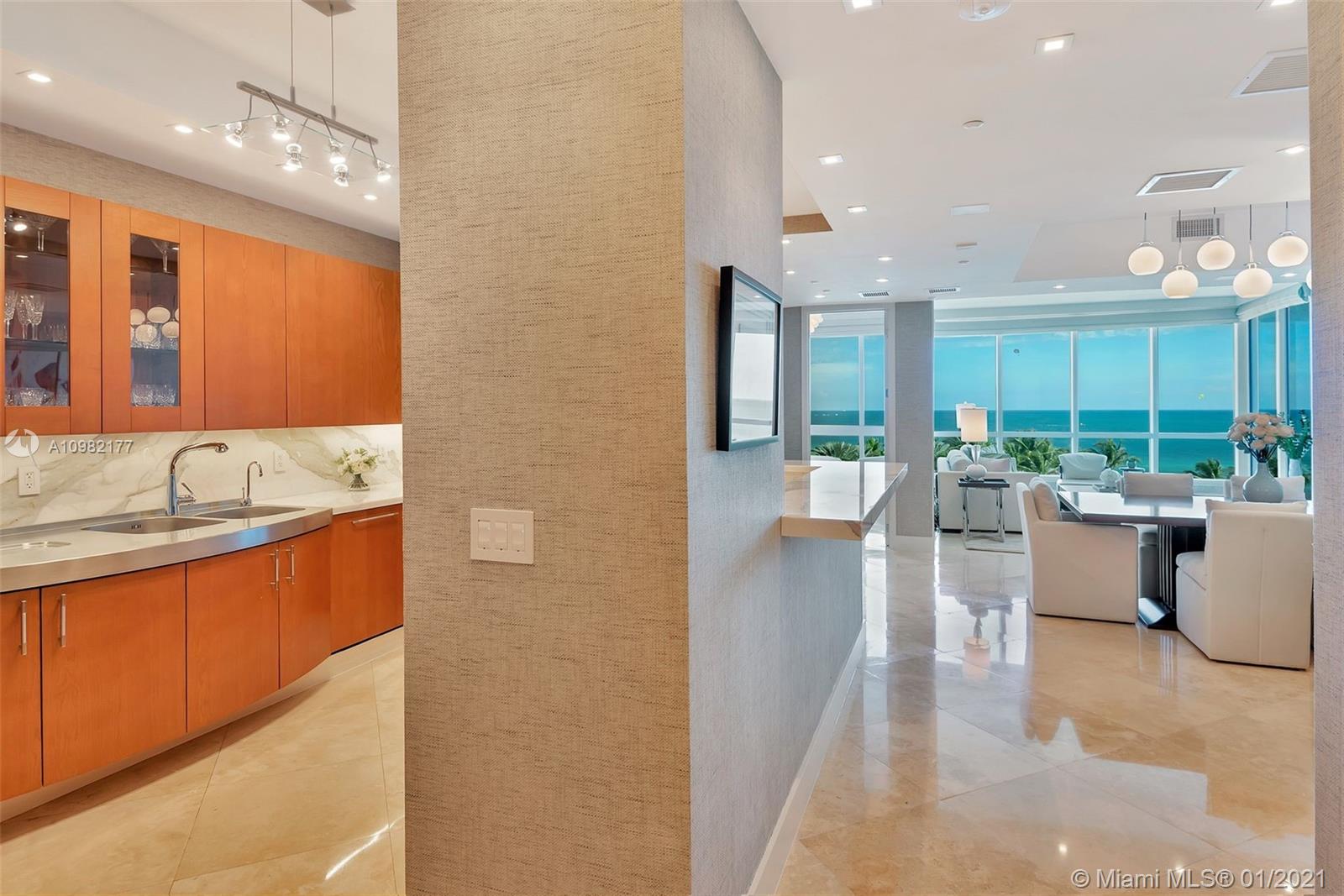 As one walks into this bright impeccably decorated home through the private foyer all the eye can see are layers of pristine turquoise waters ,powder blue skies , sandy beaches framed by gracious lush palm trees. It just doesn’t get any better, this must see 2 bedroom 2 1/2 bathrooms spacious 1870 sq foot home has a luminous quality as light glistens off the updated elegant chrome fixtures, rich textured furniture and white marble finishes, no expense has been spared. The state of the art intelligent design and quality features of this ocean front home are the epitome of class and luxury, all front and center at the Miami Beach world class Continuum resort with all its amenities , just call this home” fabulous elegance on the beach.”