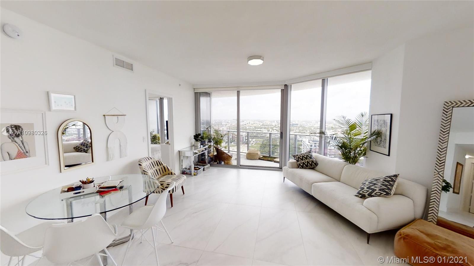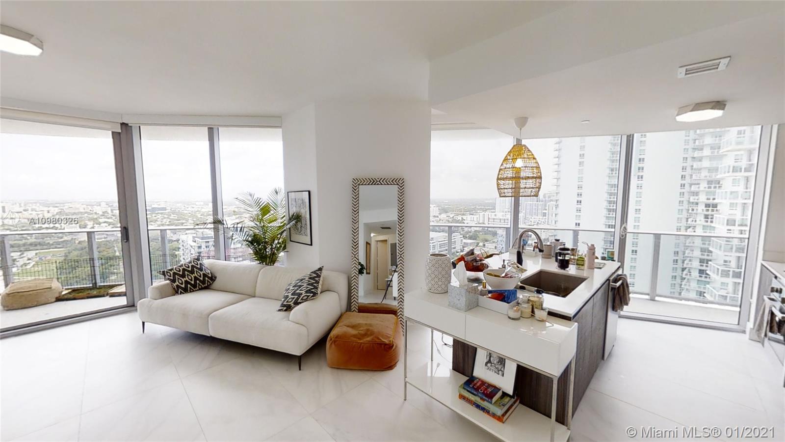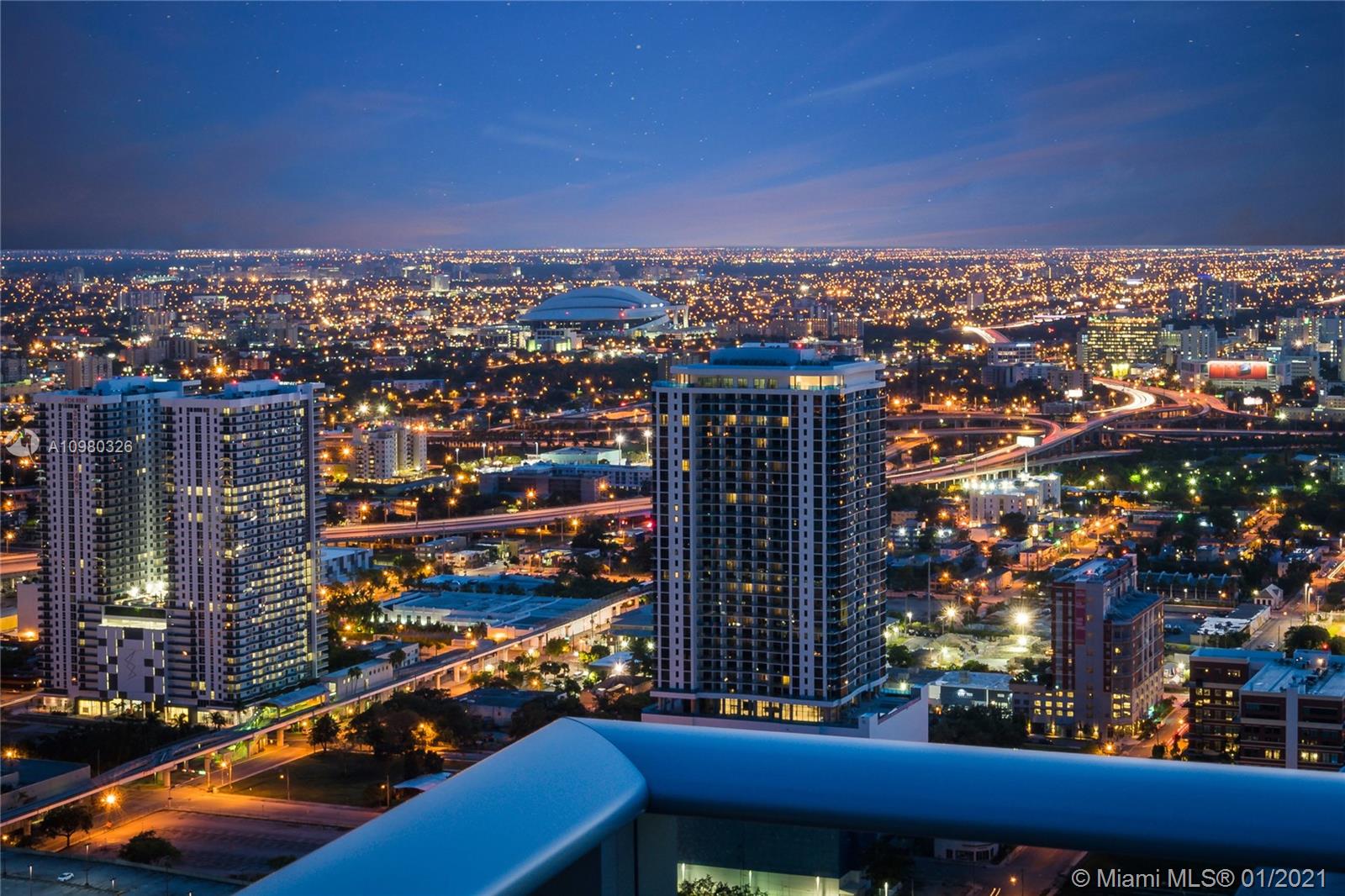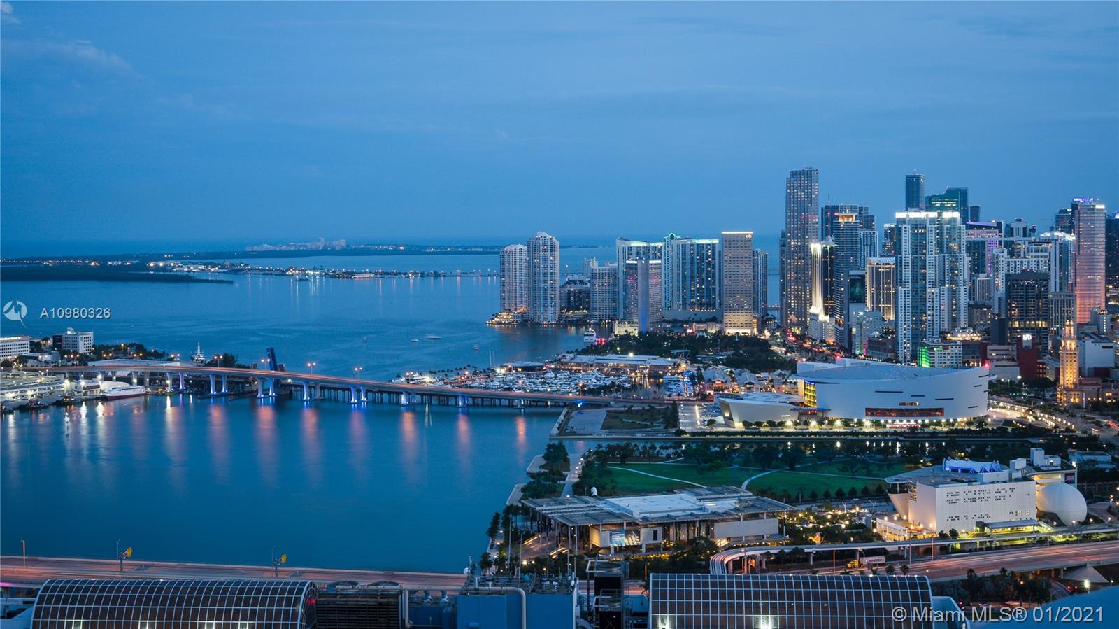 Aria on the Bay overlooking unit at the 30th floor, expansive sky terrace with panoramic Miami city view & Biscayne Bay view. Open-floor plan 2 BR -2 .5 BA with 1,661 Sq/ft Total Area, 9-foot glass from floor to ceiling, white porcelain flooring throughout the entire unit, windows treatments installed; shades and blackout, modern cabinetry, and European-style kitchen. Top of the line Bosch SS Appliances. Edgewater enviable location in Arts & Entertainment District, immediate access to Wynwood neighborhood, Adrienne Arsht Center Performing Arts. Exclusive 3 floors of amenities; pool, 24–Hour concierge, assigned parking, valet parking, state of the art Gym, yoga studio, private spa massage treatment, theatre room, teen lounge, and kid’s playroom & outdoor grill.