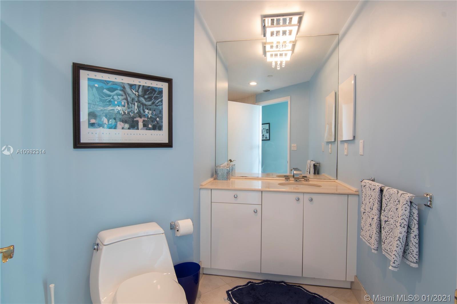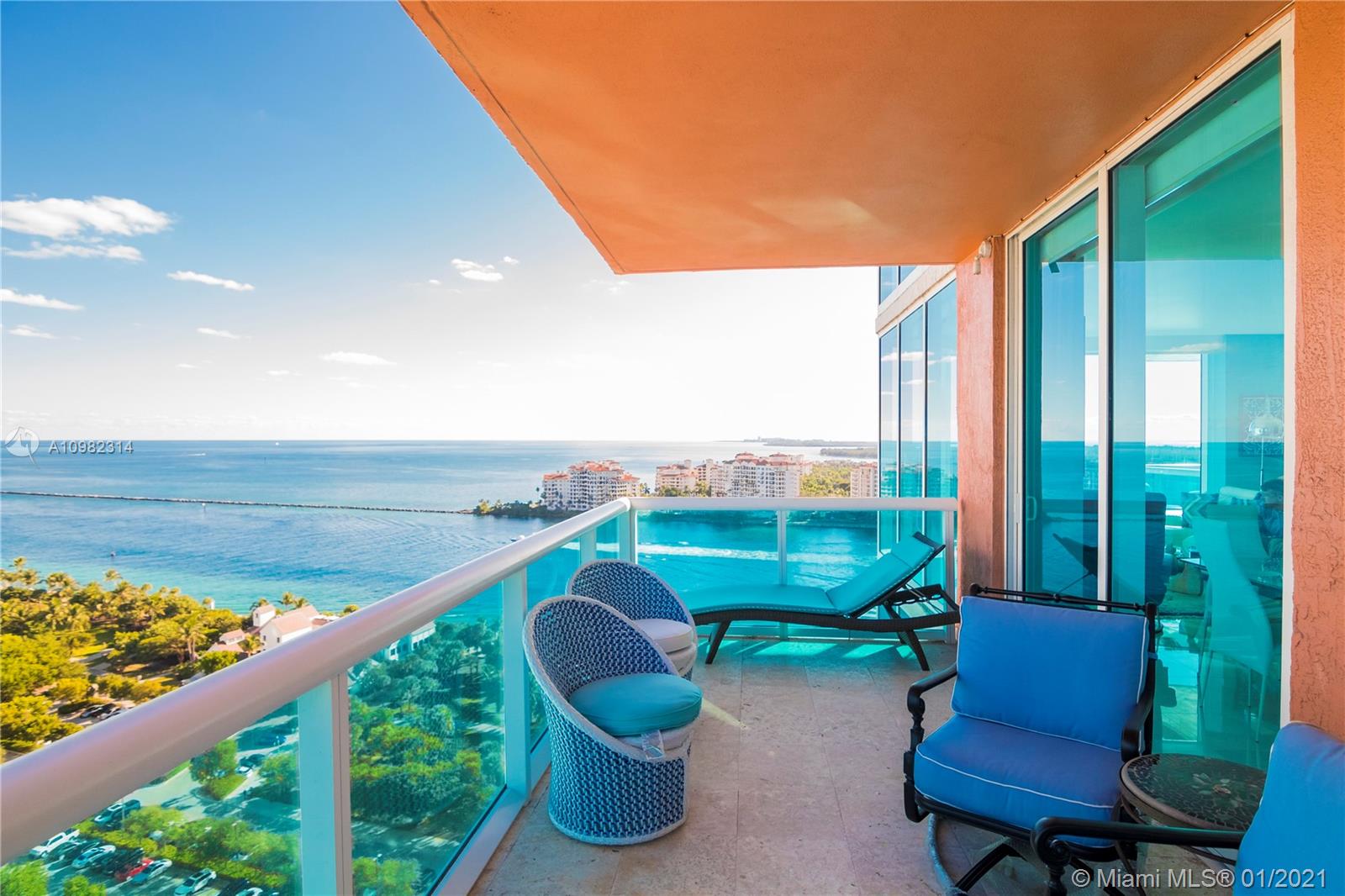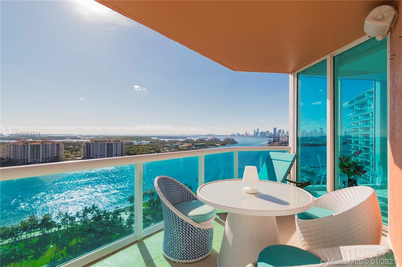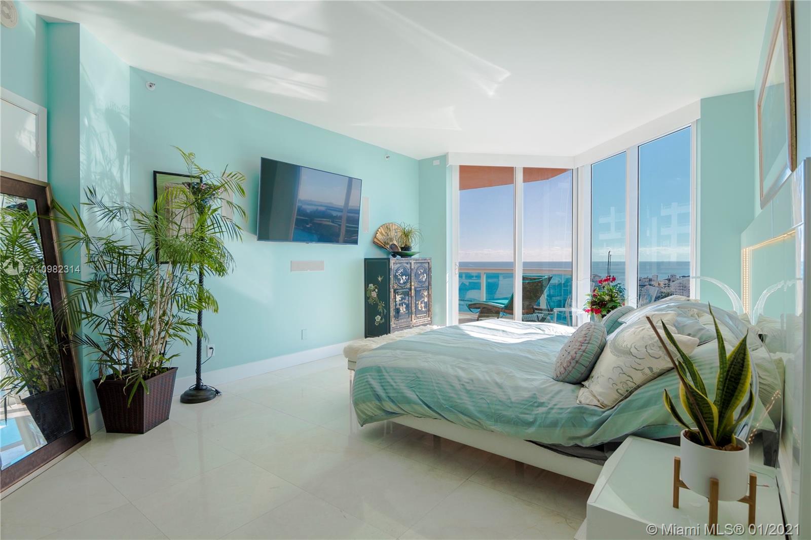 Immaculate 3 bedroom corner residence at Miami Beach's iconic Portofino Tower. Highly coveted and rarely available 01 line, boasting panoramic and picturesque views of South Beach, Biscayne Bay, Fisher Island and beautiful sunsets over the Miami skyline. Floor to ceiling glass with abundance of natural light, brand new marble floors throughout, new high-end stainless steel appliances, Sonos surround system throughout residence and on balconies, exterior lighting installed on balconies. Relax and enjoy unobstructed sunrises and sunsets from your private east and south terraces, or from the master bath tub. The most exceptional apartment available at Portofino.