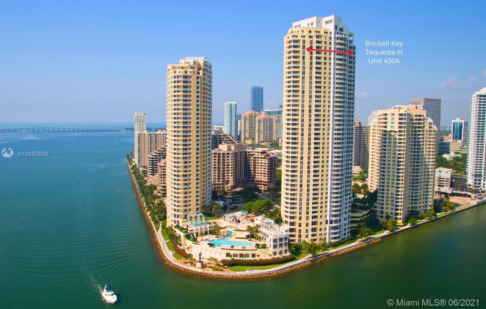 From the moment you walk through your foyer & into your expansive living room, you see panoramic ocean/bay/port views in this oversized Brickell Key condo. Feels more like a house than apartment! Enjoy Brickell’s 98% walkability in Miami’s most exciting neighborhood. Live, work, play...enjoy best shopping, restaurants, office towers, hotels in town. Split floorplan, 2 Master Bedrooms, largest 04 floorplan, 3,257 SF, 4BR/4.5B. Bright kitchen w/views, Butler’s pantry, marble floors, custom woodwork. 2 reg. assigned parking spaces plus highly desired private double garage #9 with its own remote-control garage door + lots of add'l storage. Luxury amenities: 24/7 security/valet/concierge, waterfront pool, BBQ/party area, 2-level spa/fitness, tennis, basketball, racquetball. Live your best life!