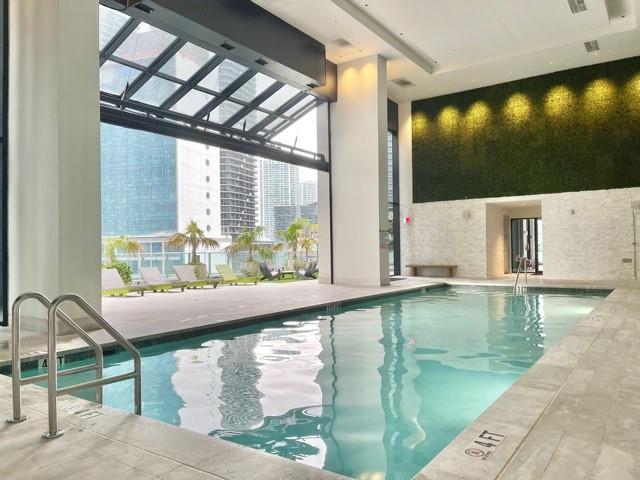 Stunning 2 Bedroom plus den plus 3 bathrooms unit, with private balcony in Master Bedroom, with 2 elevators one private .Panoramic view of the Miami Skyline, city, bay and ocean. Building featuring The Club at 1010, an exclusive two-story amenity area with dozens of activities for all ages and interests. Amenities include an indoor heated swimming pool with retractable glass walls for flexible access to outdoors Also an spa ,a basketball and Squash racquetball courts. Spectacular rooftop sun deck access with bar , jacuzzi and pool. Spa featuring a steam bath area and more. This is a full service building with 24 hrs front desk attended and valet parking.