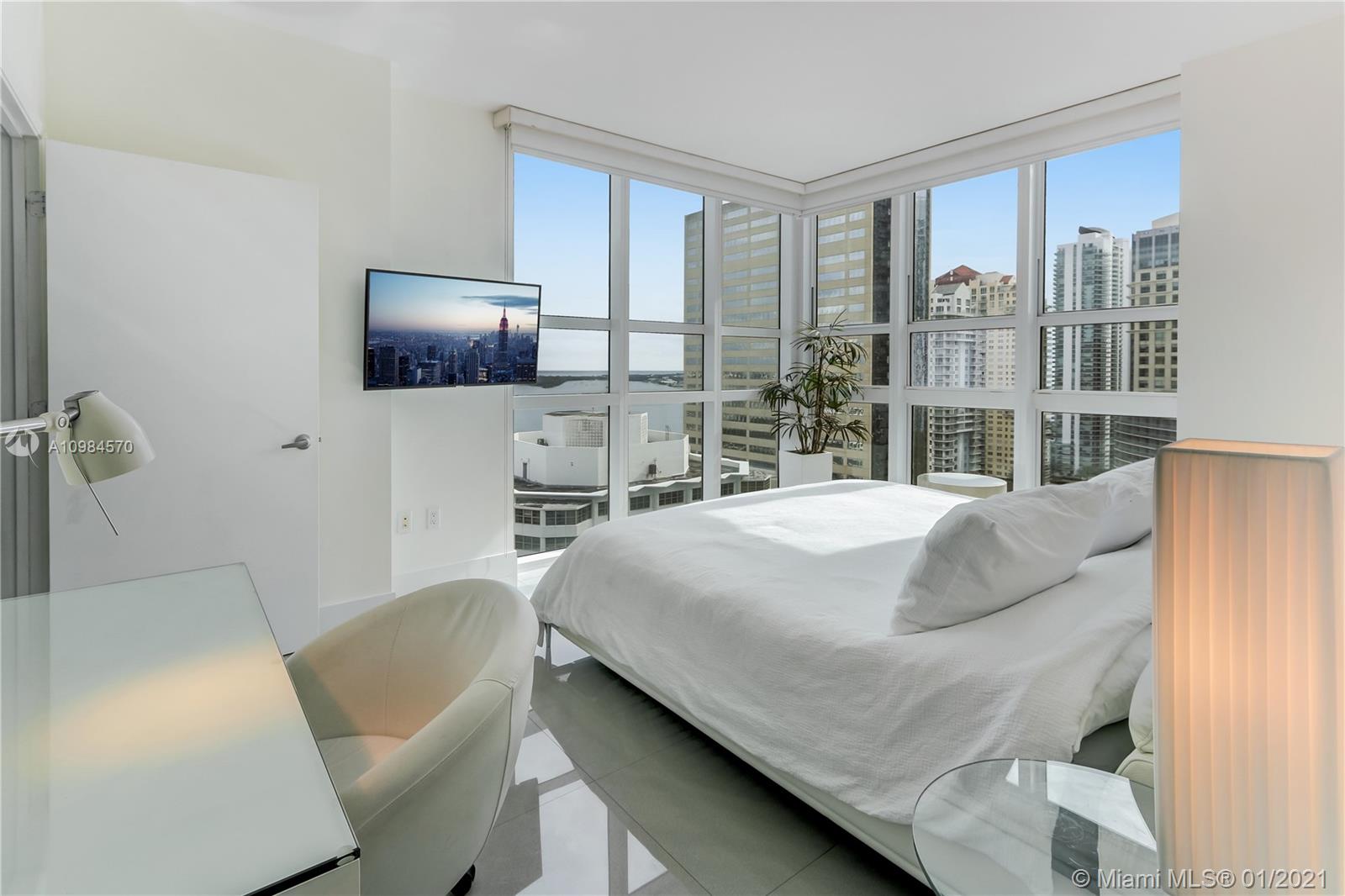 Great and large corner unit, 2 bedrooms and 2.5 baths with high ceilings and porcelain floors. Enjoy the wonderful Ocean View and the City Skyline through all the living areas. Spectacular amenities, 2 heated pools with cabanas, fitness center, steam room, business center, party room w/kitchen, valet parking and more. Building is centrally located in Brickell, walking distance from great restaurants, entertainment areas, Brickell City Center and financial center. Just minutes away from the Design District, Wynwood, and The Beaches.