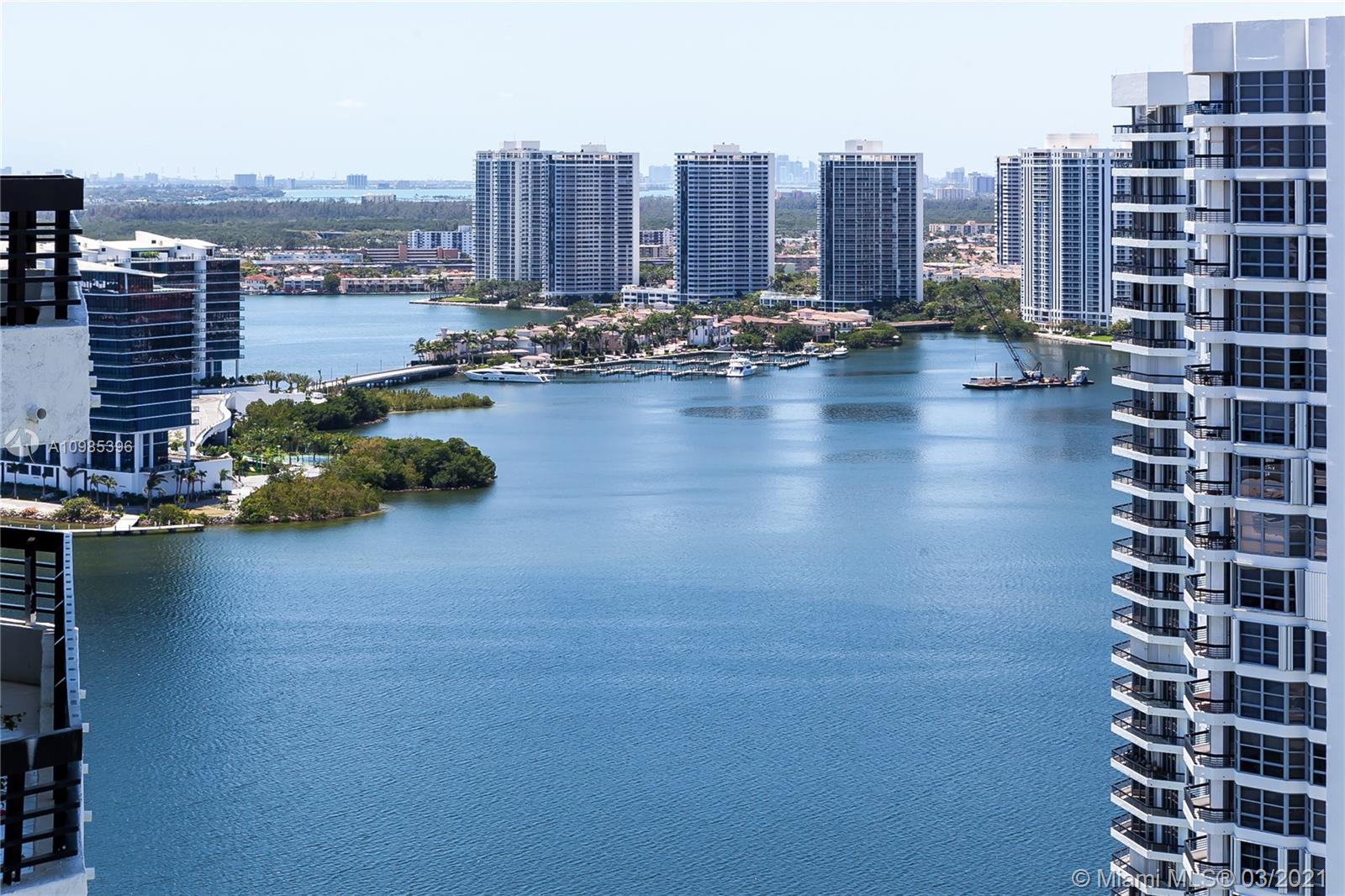 Enjoy the most beautiful sunsets from your spectacular 33rd floor w/ panoramic views of the intracoastal, exclusive Turnberry golf course, boats, & marina! Full of natural light & spacious master bedroom & bath w/separate shower & tub. 2nd bedroom is so large it can become a 2nd master w/ its own private bathroom. Can be rented during first year of ownership. State of the art gym. Meeting & game rooms for you to enjoy. Amenities are: a marina, 7 tennis courts, tennis pro, mini market, hairdressers, restaurant, 1 basketball court, picket court and dog park. Wonderful walkway along the bay.