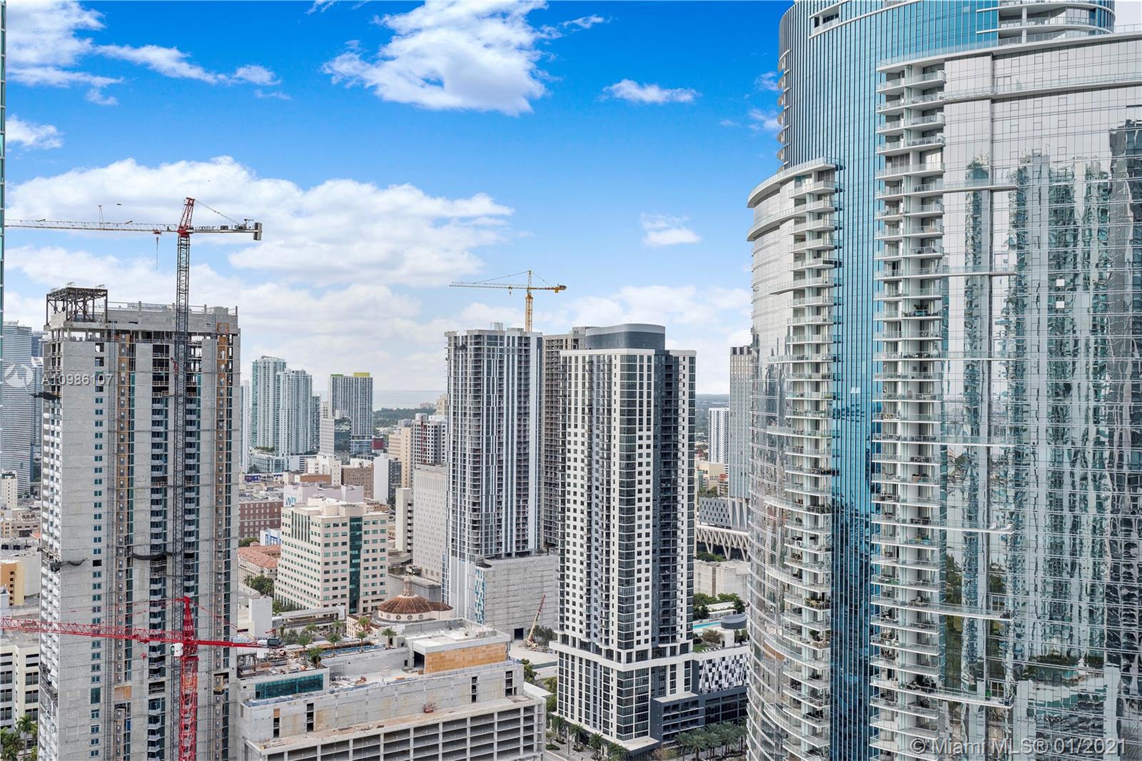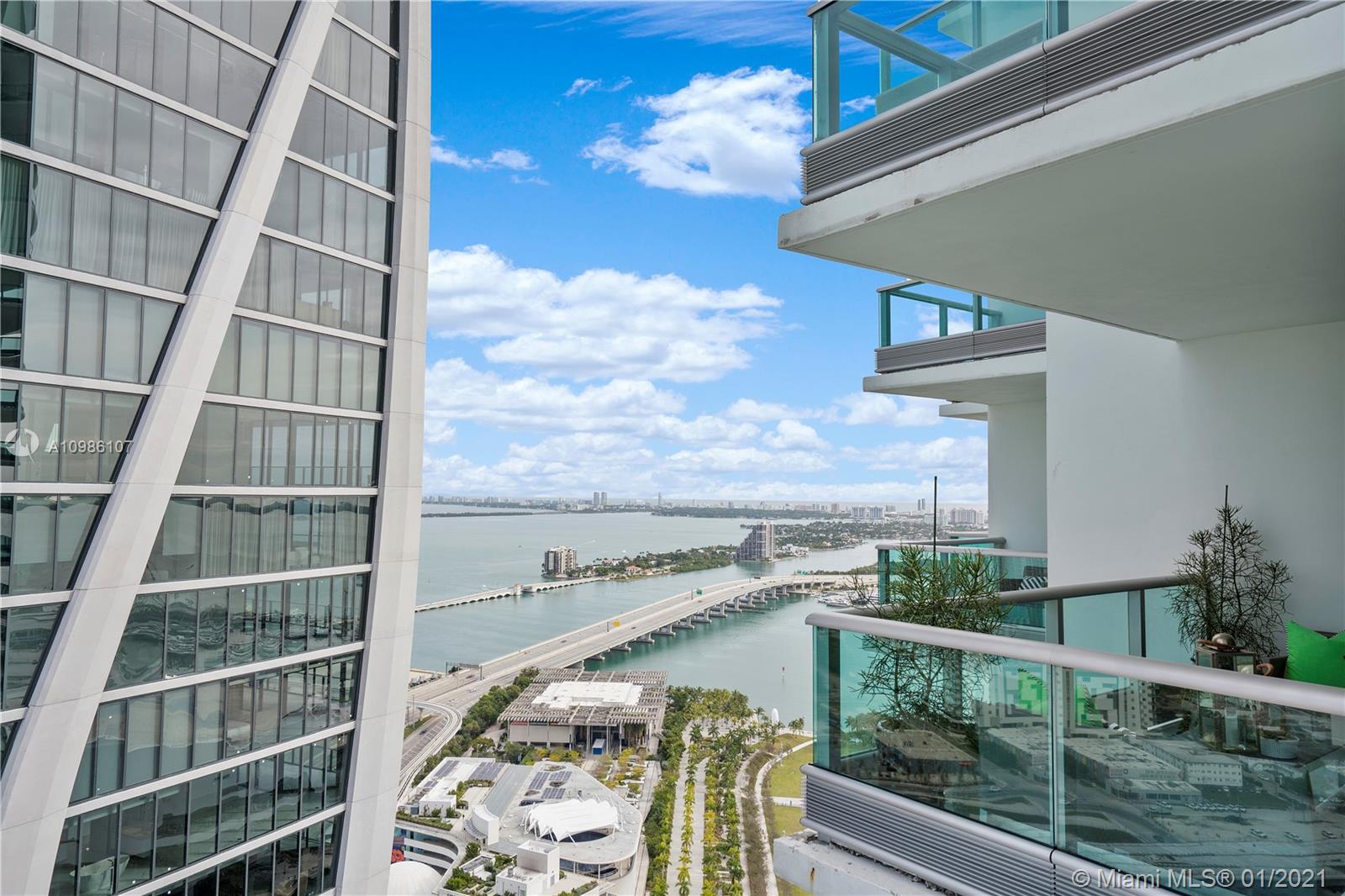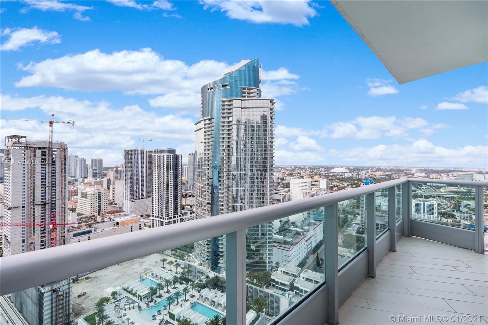 Super clean unit with city, bay and ocean views at 900 Biscayne. Marble countertops/island and freshly painted, unit shows like a model. 2/2.5 corner unit with 3 large balconies, stainless steel appliances, tile floors and all window treatments (blackouts in bedrooms) powered with remotes. Luxurious and amenity rich building including spa, movie theater, nice gym, 2 pools, meeting/party room, 24 hour security, valet and in-house concierge. Across from the AA Arena, Art and Science museums. Short ride/walk to downtown, airport and beaches.