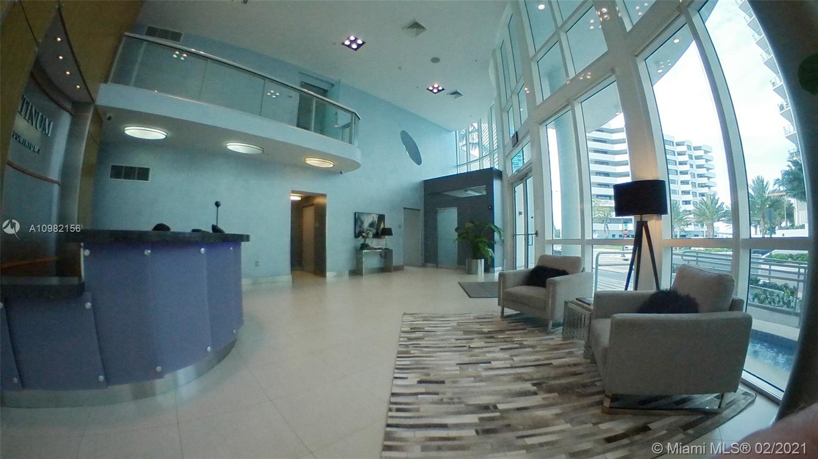 Oversize 1 Bedroom with 1 Full Bathroom and Powder room. Unit features floor to ceiling Sliding Doors, two Balconies Facing NE, Laminated floors throughout, large Walk in closet & open Kitchen configuration. Platinum is located in the heart of Edgewater with walking distance to Restaurants, Starbucks, Midtown, Wynwood and easy access to major highways, 10 Minutes away from South Beach and 15 minutes from MIA Airport. Platinum Condo is a boutique building with only 116 units, Building offers, Concierge, Office/meeting room, Gym, Spa facility, Party Room & Pool deck (under renovation). Easy to show.