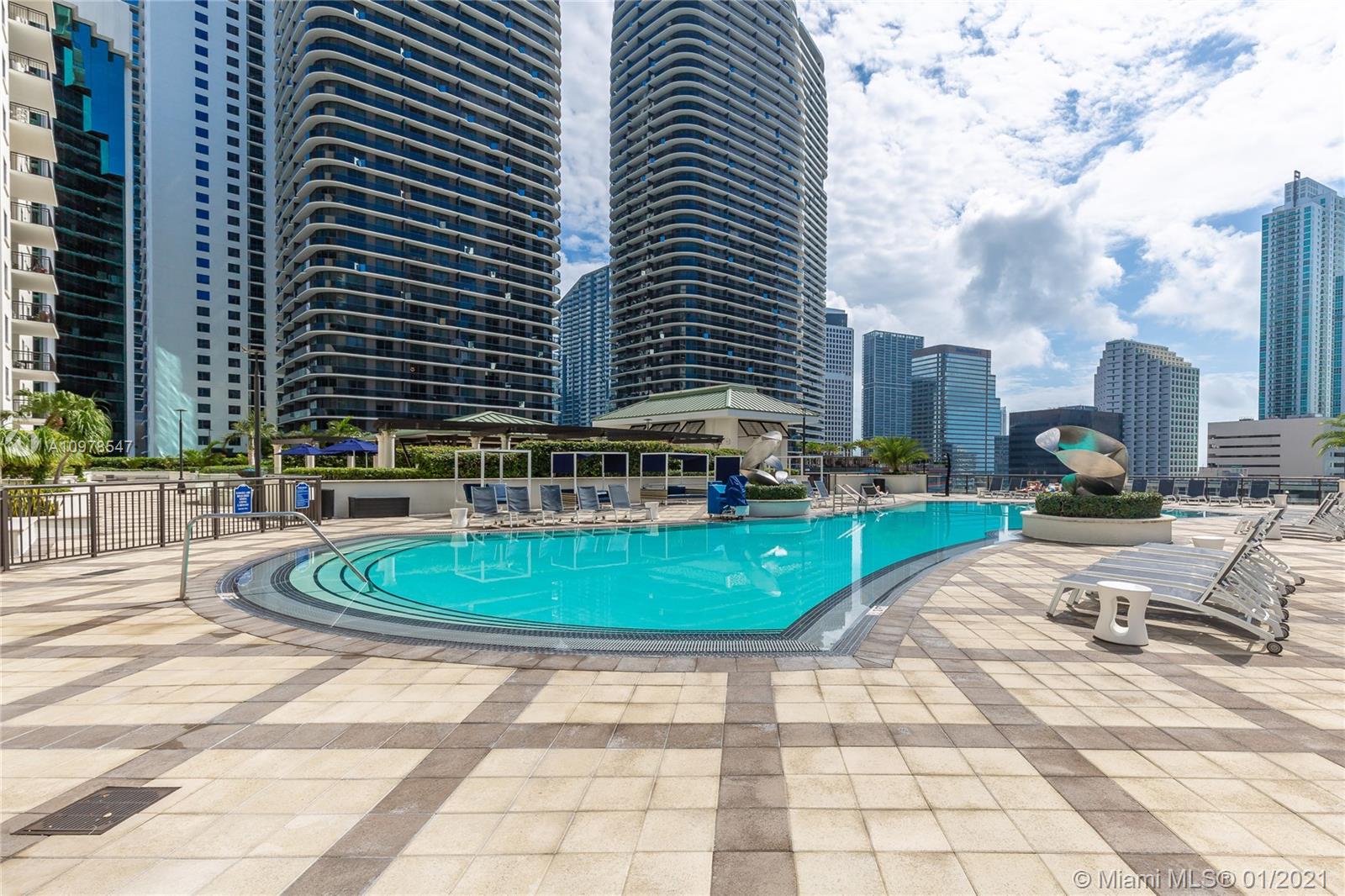 Furnished and VACANT! 2/2 apartment in the same floor of Amenities,it has the highest ceiling(11')in the building on line 12.You don't have to take the elevator to go to the pool,gym,play room,dog patio,etc.(it's the only floor in the building with NO carpet).Unit is very bright,has ample balcony,open floor,huge kitchen with quartz and SS appliances,full size washer/dryer,impact windows,walking closets.Master bath has shower in one side and a bath tub with shower in the other side.A small luxury that is great,you won't wet the floor after the bath while crossing it to take the shower ;) Only owner!Unit used as a vacation home and it was never rented.Metrorail across the street,Publix and the renovated Mary Brickell Village under the building,a lot of restaurants around.