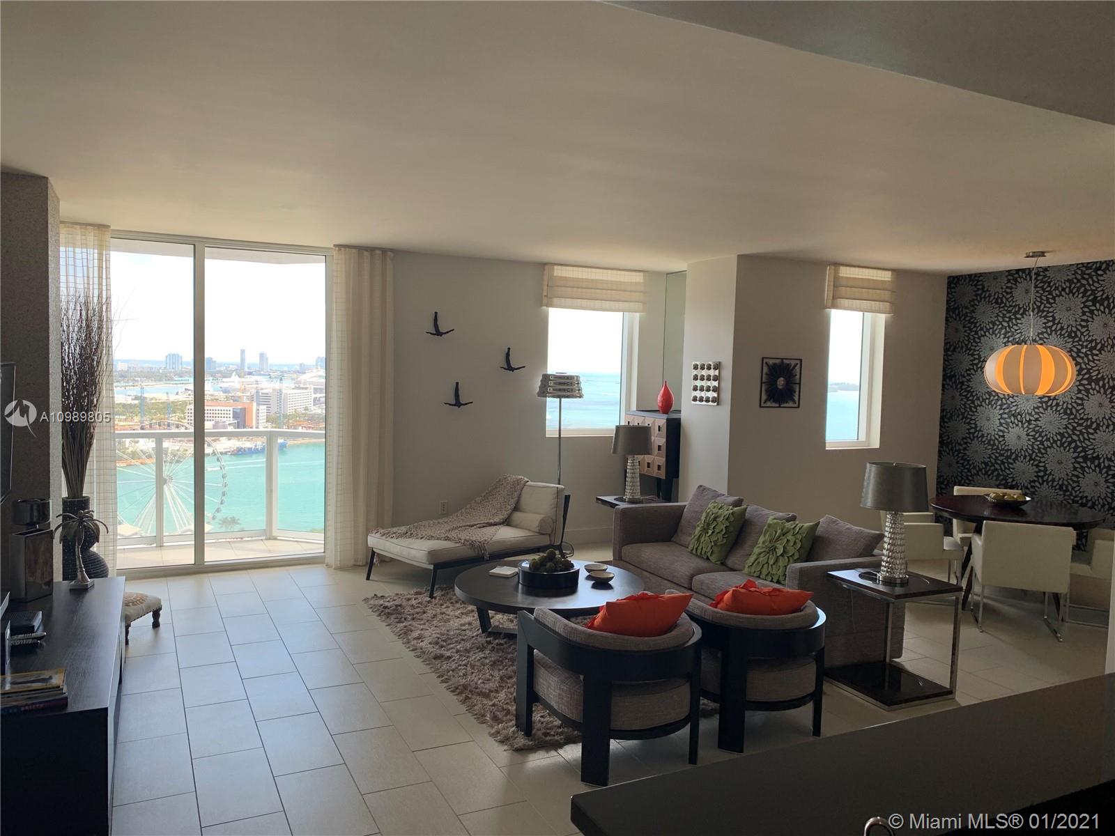 Opportunity knocks. Stunning, rarely available, move in ready corner unit on Vizcayne’s North Tower. Expansive and unobstructed, direct bay & city views, fully furnished and professionally decorated by Azul & Co. 2 Bedrooms + Den/3rd Bedroom, 2 1/2 Baths, top of the line European Kitchen cabinets and stainless steel appliances. Located in the heart of Downtown Miami's vibrant scene. Amenities include: 4 pools, Jacuzzi bar over looking the bay, sauna, massage, steam, lounge area, valet and front desk. Walking distance to Bayside, AA Arena, Whole Foods, Perez Art and Frost Museums, Performing Arts Ctr & Bayfront Park.