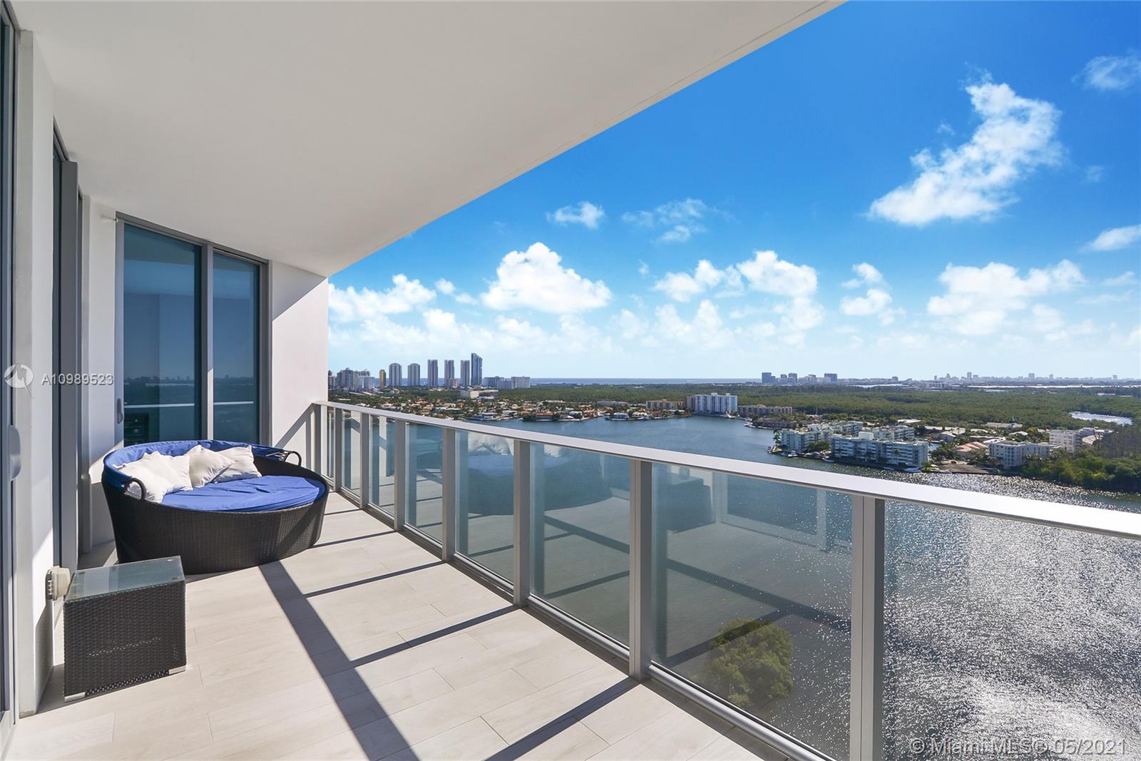 Beautiful and ready to live-in 3 bedroom x 3.5 bathrooms plus den unit in luxurious "The Reserve at Marina Palms". Professionally decorated. Breathtaking intra-coastal / mangrove / ocean views from all bedrooms and from the living area. Porcelain floorings throughout. Custom made closets and mirrors. THREE covered parking spots and one storage included in the sales price. Modern kitchen by Snaidero with top of the line appliances from Bosch, Subzero and Miele. The community offers a state of the art gym with gorgeous water views, a spa, sauna, spinning room, Pilates room, kids room, teens room, a designated pet walk, business center, a clubroom, and more! Experience life on the water with available Boat Club memberships. 24/7 security: man-gated and security throughout.