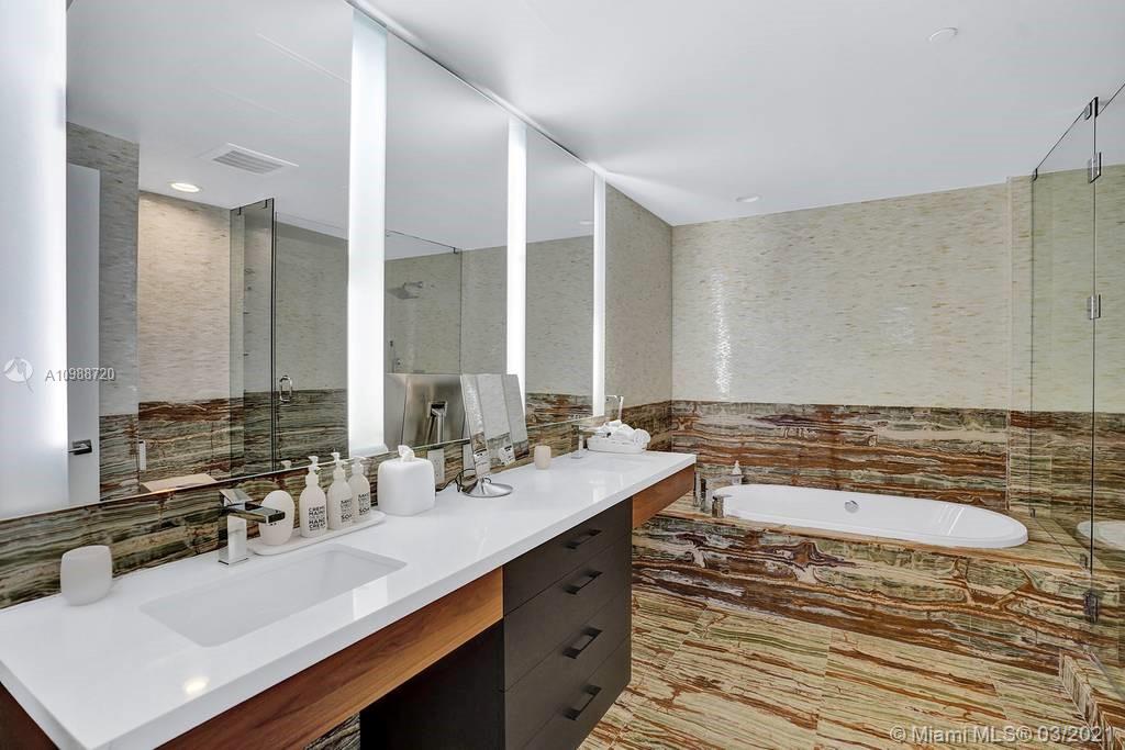 Well laid out 3 bedroom, 3.5 bath luxury unit; each room has their own in suite bathroom and there is a half bath for guest. Ample closet space. This unique unit boasts an oversize terrace/balcony big enough for a large dining table, pool table, living room suite and more. Washer/dryer in the unit, and all other state of the art appliances including a GAS stove, coffee maker, and wine cooler. Private elevator and foyer, extra storage, 1 self-parking space and unlimited complimentary valet parking. 1 Ocean is a fully service 50 unit, boutique building with 24-hour concierge. Beach membership and service included with maintenance.