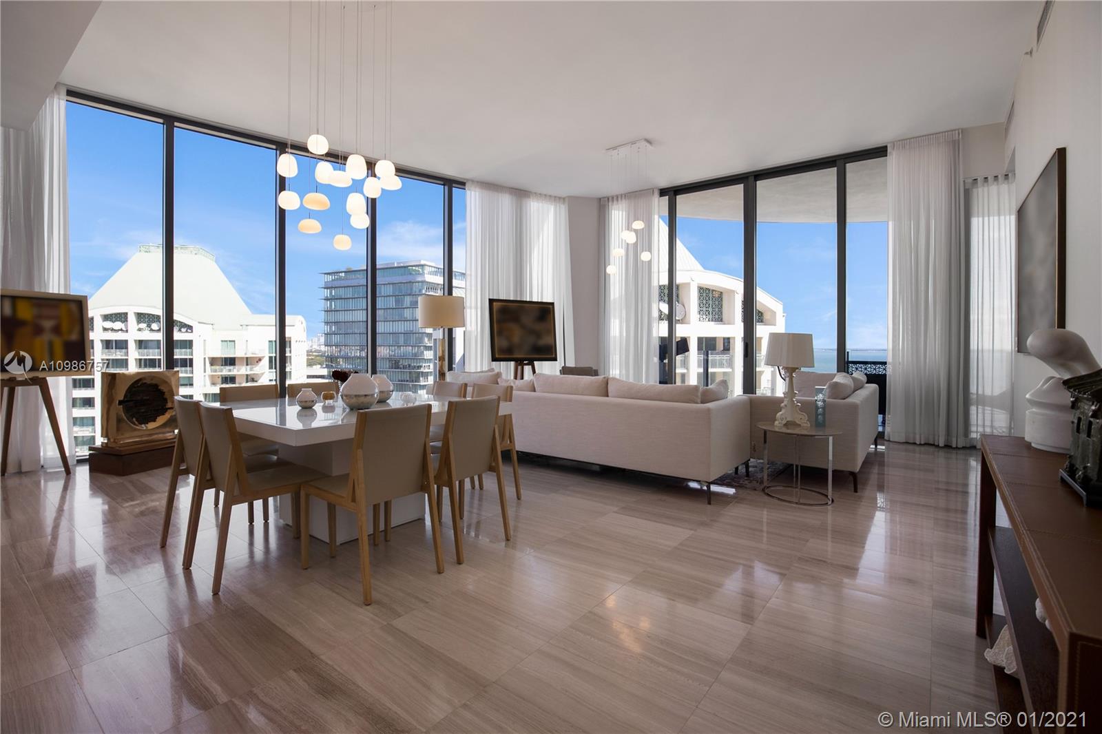 Highest Floor available at Two Park Grove, unit 19D features an expansive floorpan with 3 bedrooms 3.5 baths 2917 Interior sqft and 439 sqft of balcony and Gorgeous Bay views . The Residence features 12 ft Floor to Ceiling Windows throughout, private Elevator, eloquent kitchen designed by William Sofield with Top of the line finishes. Designed by Pritzker Prize Winning Architect Rem Koolhaas/OMA, Park Grove gives you the ultimate luxurious experience. The building features Spa, Fitness Center, Resort Style Pool, Cabanas, Children's rooms, Restaurants, and 24 hr Concierge and Valet. Call LA for showings