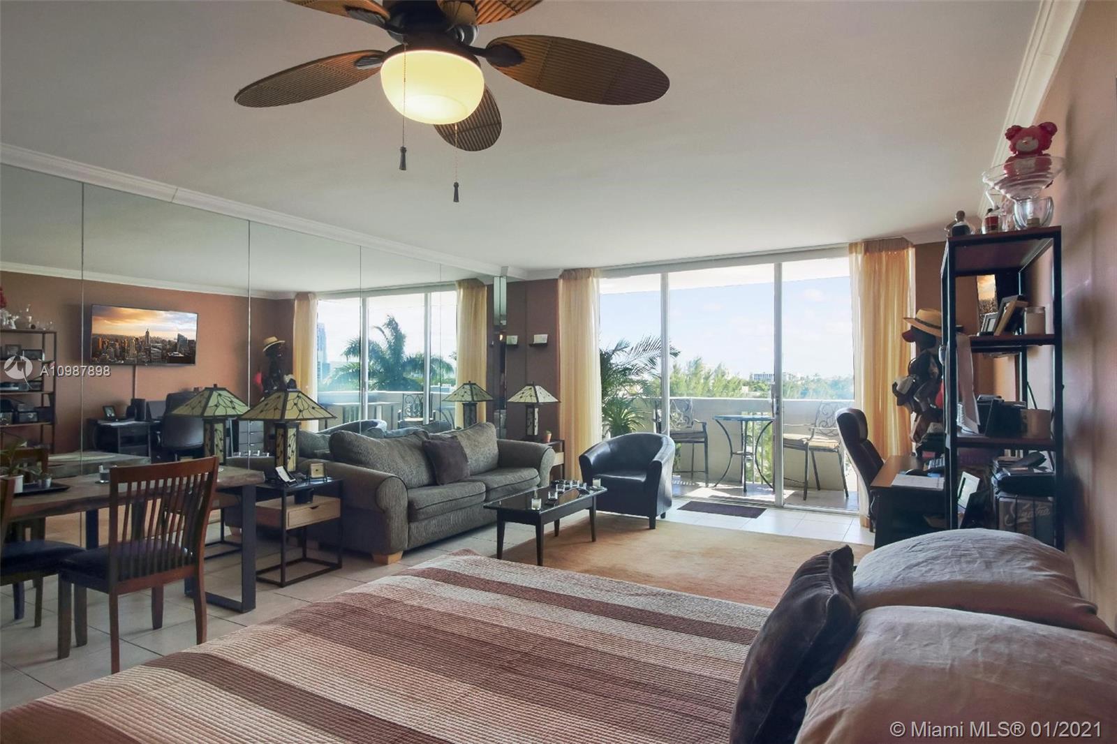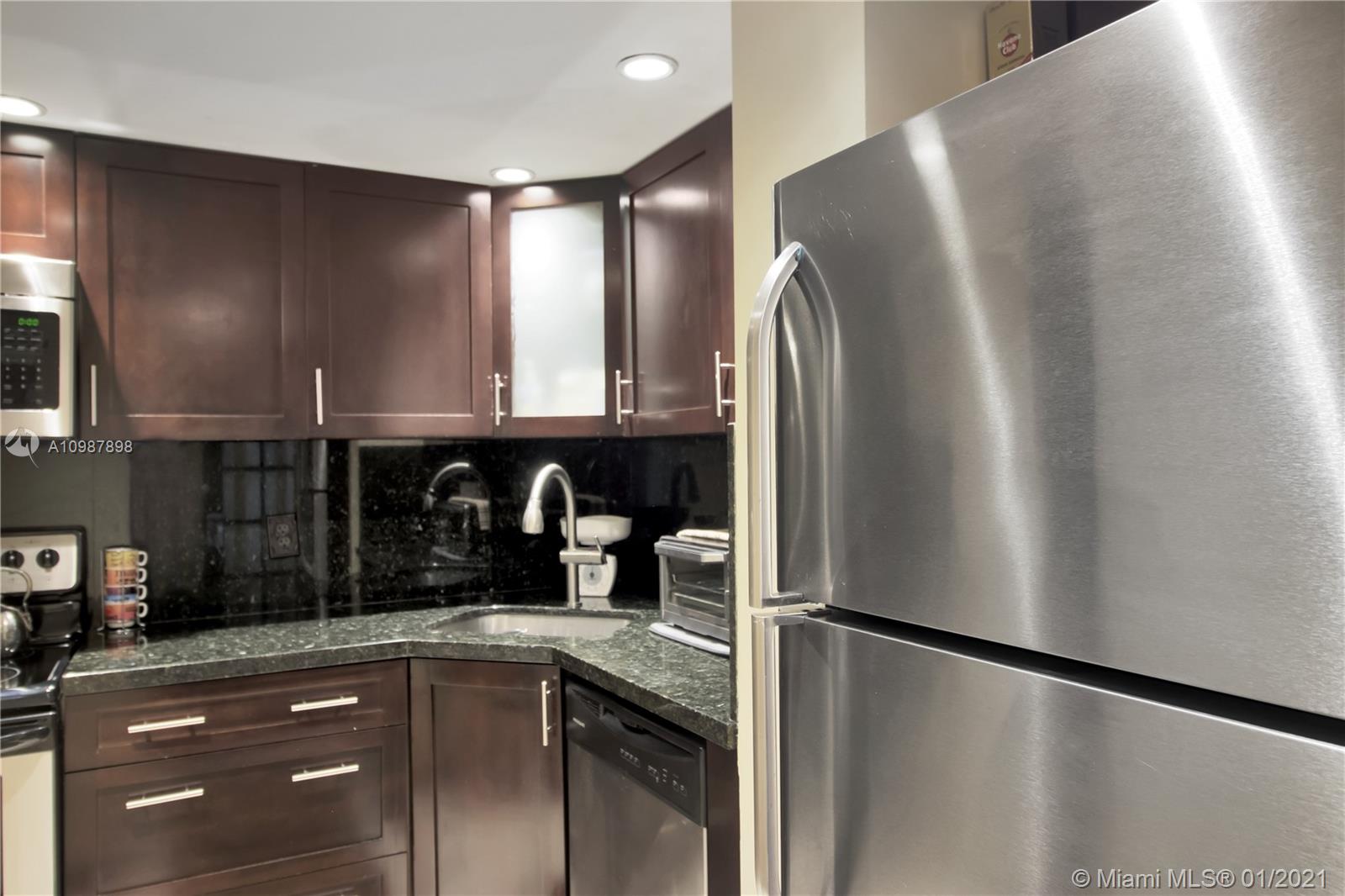 Move-in ready studio with a balcony. Bright studio with an unobstructed skyline view of Miami Beach. Upgrades include tile flooring throughout, smooth ceilings, updated kitchen and bathroom, stainless steel appliances, and granite counter tops. Prime South Beach location. Bay front condo with resort style amenities-- bay front pool deck, hot tub, bbq area, boat slips, and fitness center. Unit comes with one parking space. Maintenance fee includes cable and internet. One small dog is ok. Rentals are allowed (six month minimum). Walking distance to shopping, dining, the beach and parks.