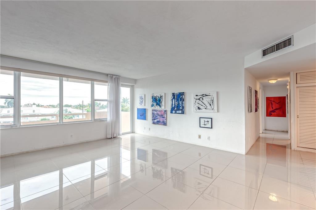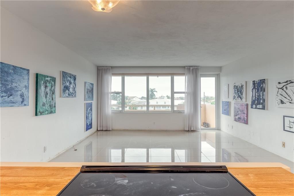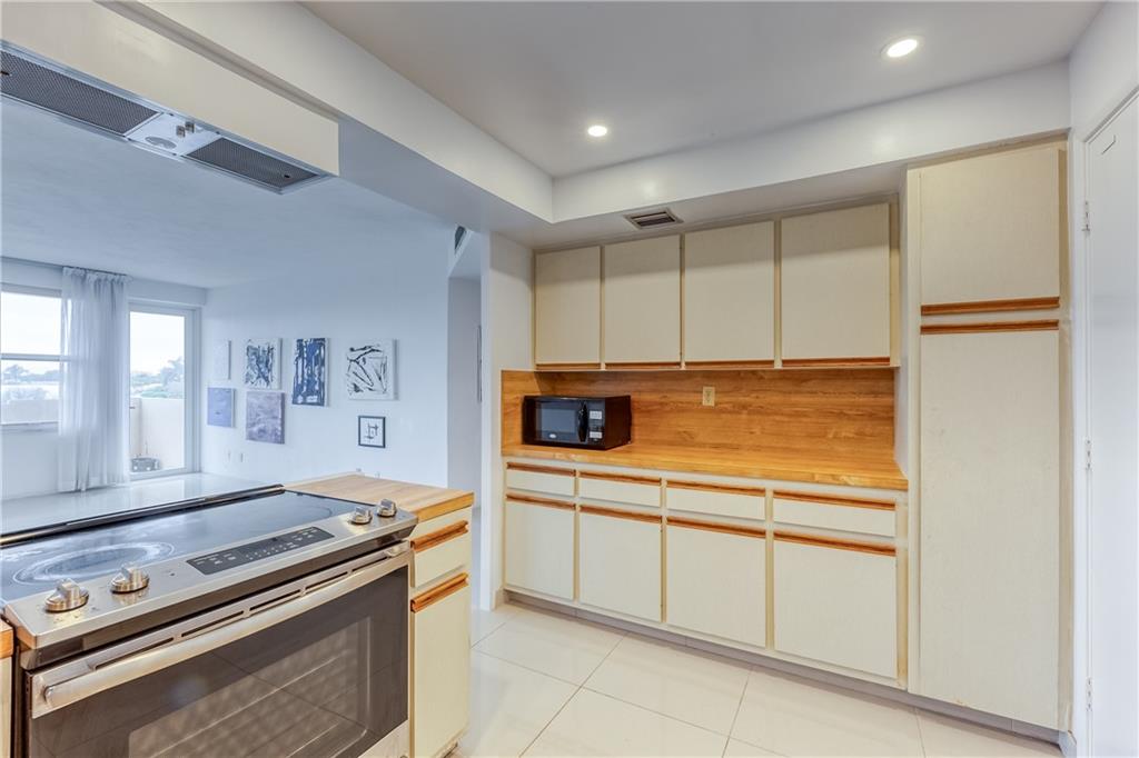 Spacious 2 bedroom 2 bath across from the beach at Coral Ridge Towers East! Current owner opened up the kitchen to the living area making it much nicer when you are cooking or entertaining guests! Flooring has been updated to 24 inch porcelain tiles throughout the entire condo, easy to maintain. Unit has high impact windows and doors with VERY large windows throughout. There is a bonus window in the master bedroom and extra space in master bedroom as well compared to similar 2 bedroom units in the building. You get extra living area and more natural light! Building has many updates, large special assessment for new balconies will be paid for by seller at closing. See brokers remarks for minimum income requirement to purchase. LOWEST priced 2/2 in the building! Across street from ocean!!