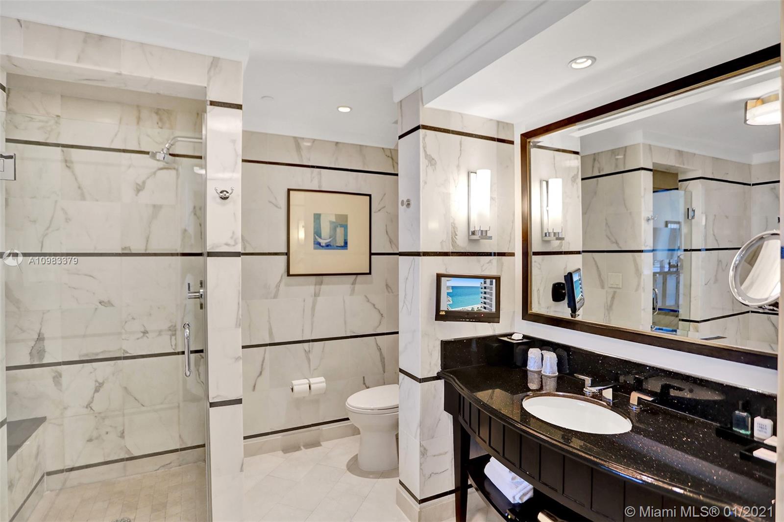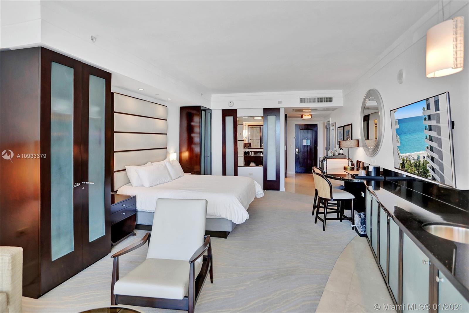 Beautiful Jr Suite w/ocean & pool views at The Fontainebleau III. Enjoy full service, vacation-style living in a furnished turnkey unit with king bed, sleeper sofa & more. Enroll in hotel rental program & receive income while away! The Fontainebleau Resort offers luxury amenities on 22 oceanfront acres including award-winning restaurants, LIV night club, Lapis spa & state-of-the-art fitness center. Maintenance includes: AC, local calls, electricity, valet + daily free breakfast in the owners lounge.