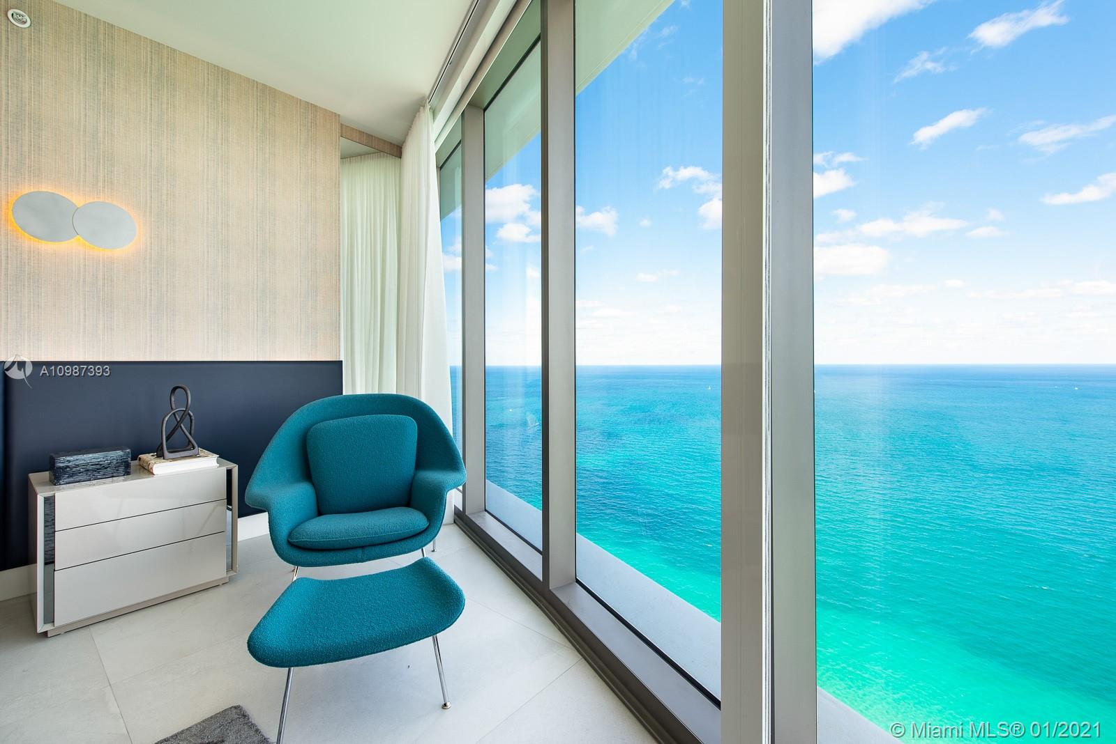 Unique super high-floor 4 bedrooms/5.5 baths with 10' ceilings wrapping around the entire South side, sweeping 180 degrees of phenomenal ocean, intercoastal and bay views from the 43rd floor, maximized by its floor-to-ceiling windows. Turn-key and ready to move in, this unit features four balconies, Gaggenau appliances, Snaidero kitchen, Ornare panels and closets, 48x48 Italian porcelain throughout and designer furniture. Sitting on 250 ft. of oceanfront property The Ritz-Carlton Residences Sunny Isles Beach was designed by world-class architectural firm Arquitectonica and interiors by Michelle Bonan. Building amenities include 2 pools, fitness center, spinning room, pilates room, spa, beauty center, restaurant, pool and beach service, concierge, guest suites and more! A must see!