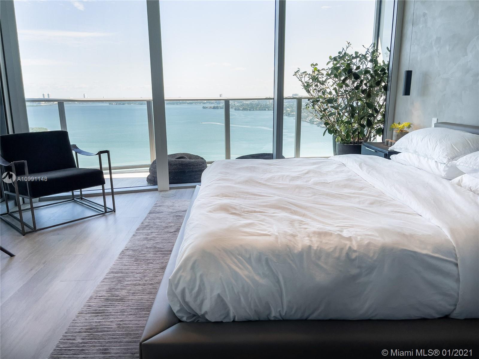 Step into a luxurious open floor plan from your private elevator entrance and experience a modern, unique and expertly decorated 3 bedroom condo with expansive, direct bay views from your wrap around balcony. This unit is sold furnished so just bring your clothes to hang in the closets and enjoy your new home. Aria on the Bay is one of the premiere condo buildings in Miami, located in the heart of the bustling city. The views are some of the best out there, with endless, serene views of the ocean and the world acclaimed, exciting panoramas of the Miami skyline.