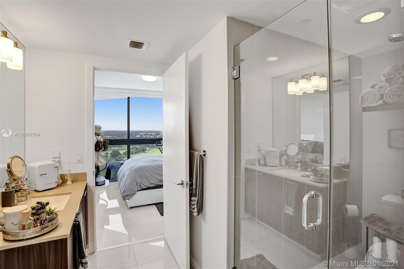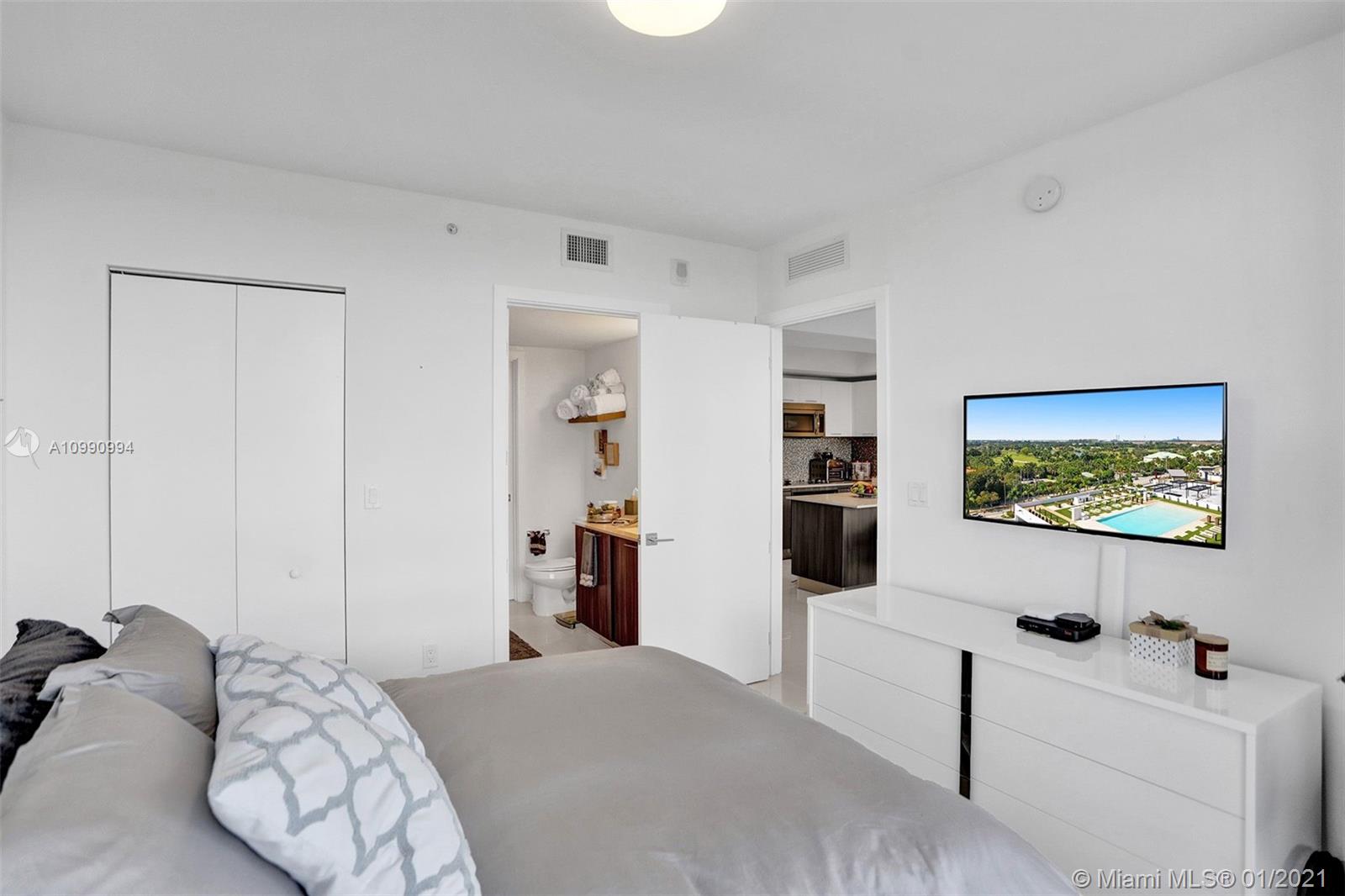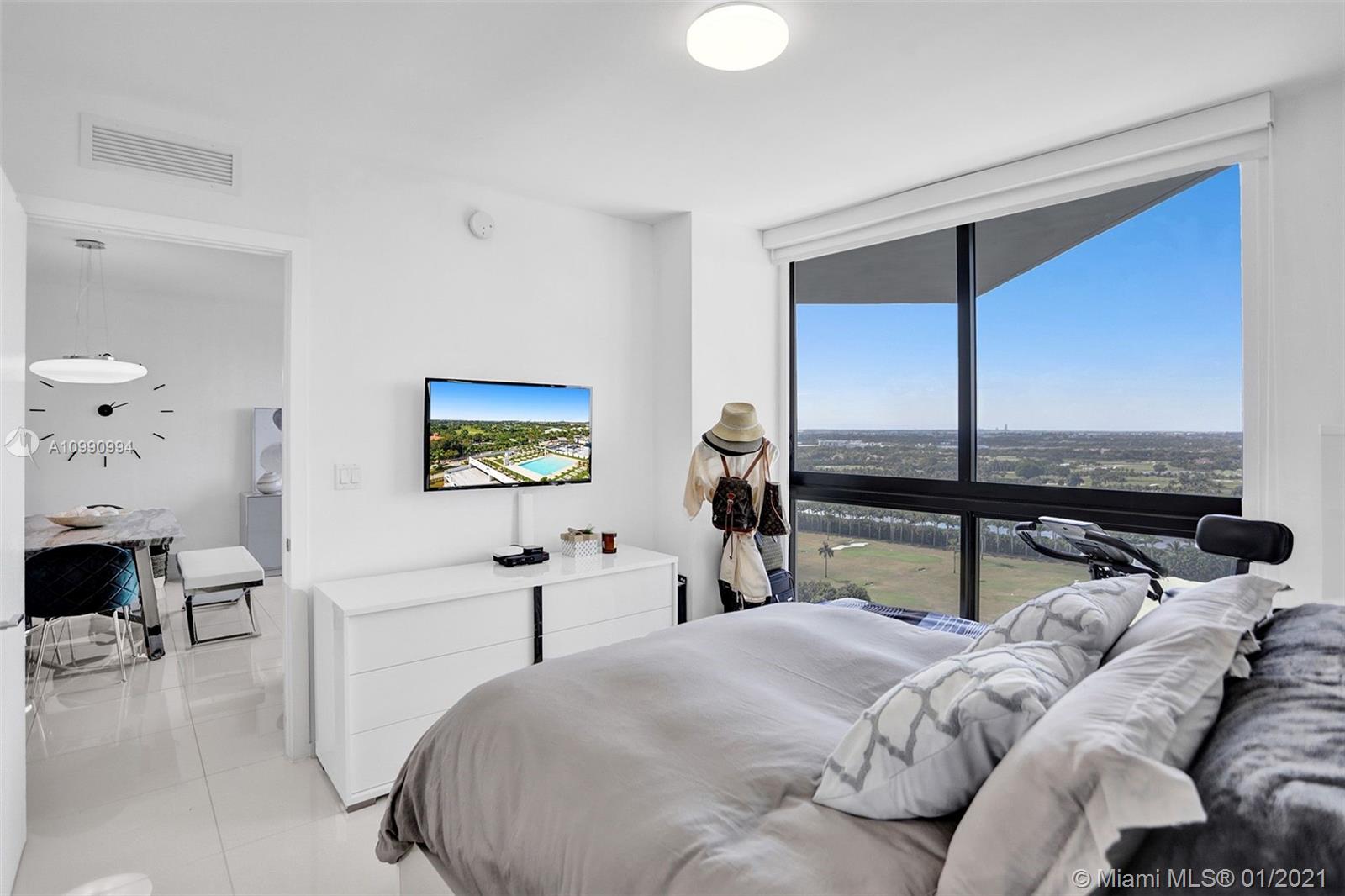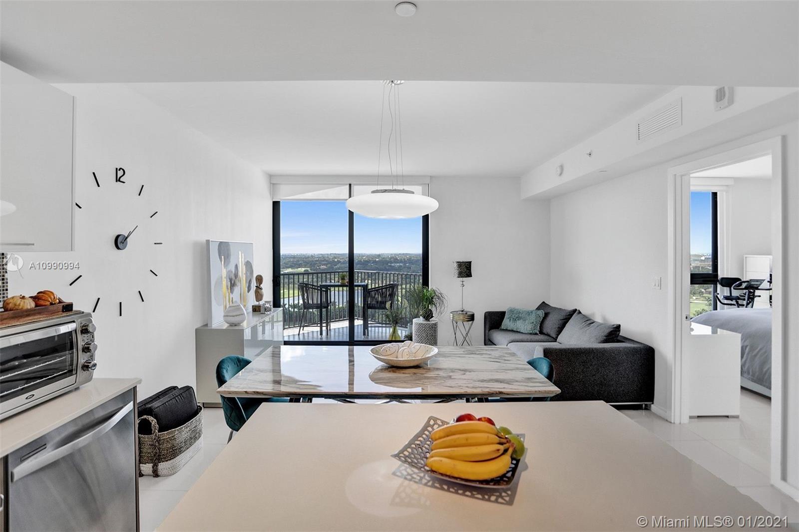 Unobstructed panoramic golf course views and skyline from every room of this high end condo in Downtown Doral. Blackout curtains, top of the line finishes, open concept kitchen with quartz countertops . Washer and dryer IN UNIT. Fantastic building amenities: pool, sauna, locker room, massage room, fitness center, cycling, valet. Be a part of the renaissance of Doral and live within walking distance of fine dining shopping and entertainment. The ultimate urban experience in the suburbs.