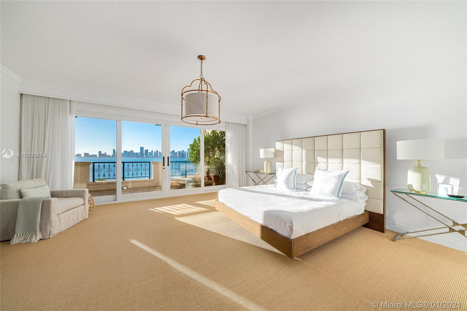 This stunning contemporary 4BR/4+1BA Bayview corner unit offers 4,010 SF of luxury, & 4 terraces w/amazing direct views to the downtown Miami skyline, Biscayne Bay, Virginia Key, over Fisher Island & Miami Beach. Unit features wide plank engineered oak wood floors, spacious open living room w/bar & separate dining area surrounded by walls of glass w/direct access to the bayside terrace. The gourmet kitchen sports a center island, brand new top-of-the-line Sub-Zero refrigerator/freezer, Wolf cooktop, wine chiller, plus custom cabinetry & separate breakfast area. Spacious private principal suite w/large new walk-in closet, premier Stark carpeting & principal bathroom w/walk-in rain shower & sunken spa tub. 3 other BRs are each spacious w/en-suite bathrooms. 5-star Fisher Island amenities.