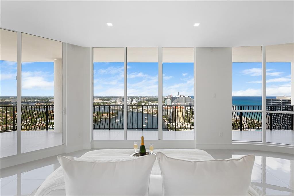 Rarely available & highly desirable NW corner Penthouse w/10’ ceilings, floor-to-ceiling glass busting spectacular 180°views of ocean,skyline,city &Intracoastal.This completely renovated 29th fl.residence offers 3200SF open floor plan w/2Beds+Den,3.5Baths residence.Master suites includes 2 separate his & hers Baths and 2 extra large walk-in closet.Incredible oversize 1200FT wraparound terrace is perfect for outdoor living & entertainment. Direct elevator access from garage into a private foyer of the residence. The best location in Fort Lauderdale just steps to the beach,water taxi,marina,shops & restaurants. 2 garage parking spaces,24hr. security,gym,steam & sauna room,heated pool,Jacuzzi,outdoor grill area,billiards,club room,library,bike storage,car wash & more.Pet friendly building!