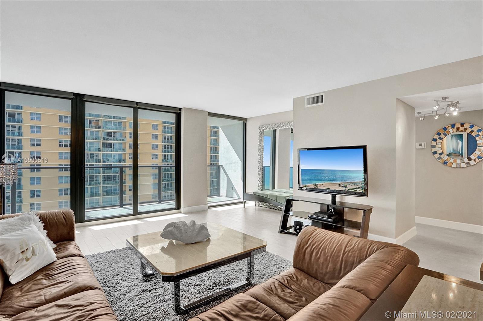 Indulge in a Breathtaking direct ocean and city view from this completely remodeled 2 BD residence. New open modern kitchen will be perfect to entertain your guests, unique counter-tops & SS appliances. Residence features impact windows, glass railings on the large balcony, tile floors, spacious Bathrooms. Building was recently remodeled. Enjoy new modern lobby done by famous Steven G Interiors. World Class amenities: 2 heated pools, Gym, sauna, billiard, business ctr, yoga/water aerobics classes, umbrella/beach chair service, restaurant. Rent once per year for minimum 120 Days
