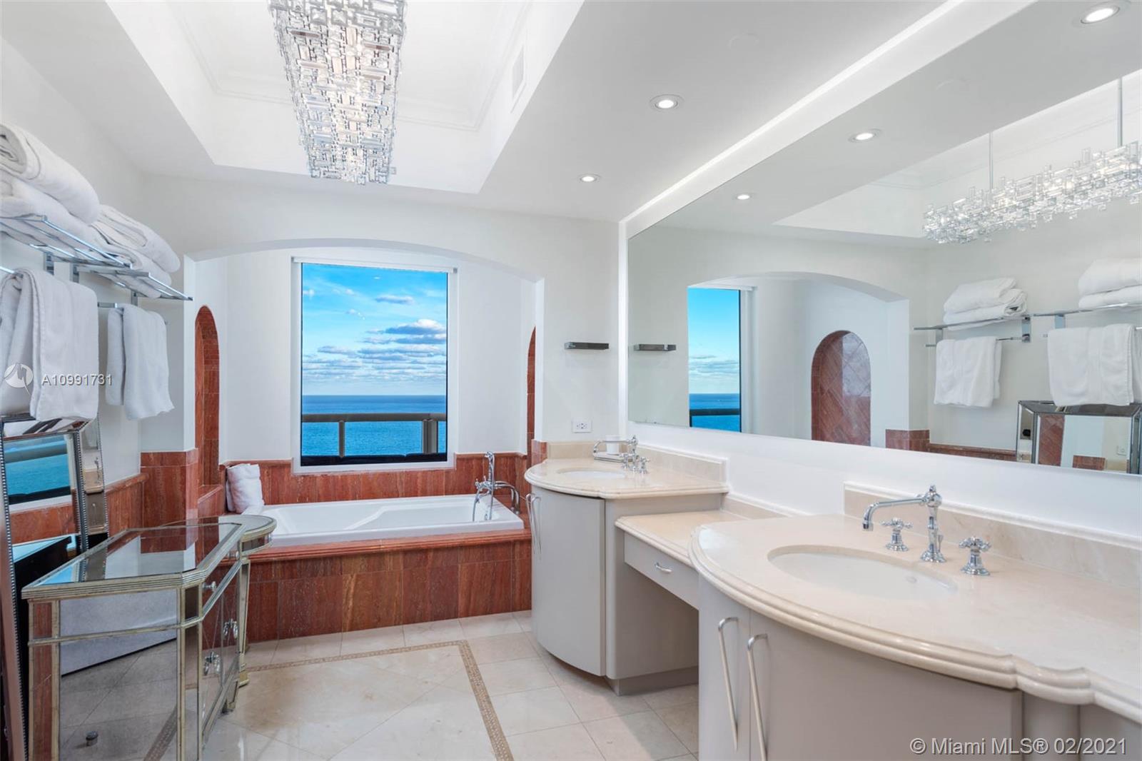 2021 Renovation, Turnkey Ready to Move-in, 4 bed/3 bath with designer finishes, on the most desirable SE corner of the Luxurious Acqualina Residences, with Sunrise & Sunset Views to enjoy. Has private elevator, marble floors, Wet bar entertaining area, modern kitchen open to living - dining area and updated bathrooms. With exceptional Control 4 home automation system controls Tv’s, surround sound, shades and lighting. The Famous Acqualina Resort is a 5 Star/5 Diamond Ocean Residence & Resort, with Fire-Pit, 3 pools, 3 Oceanfront dining areas and 20,000 sf SPA. Including 24/7 Security, Doorman, Concierge, Room Service, Kids Club, Cinema and World Class Gym. Enjoy the Most Luxurious Resort Style Living on the Beach! Tenant occupied until 11/15/2021