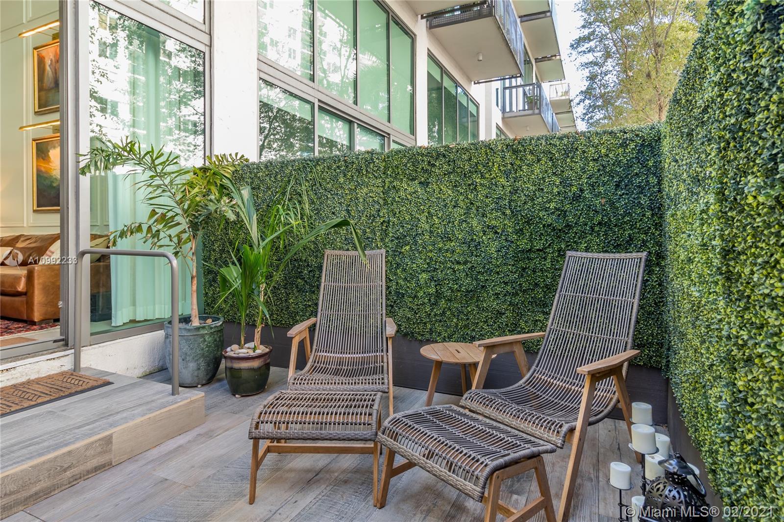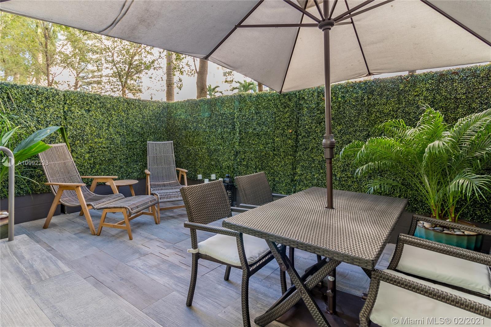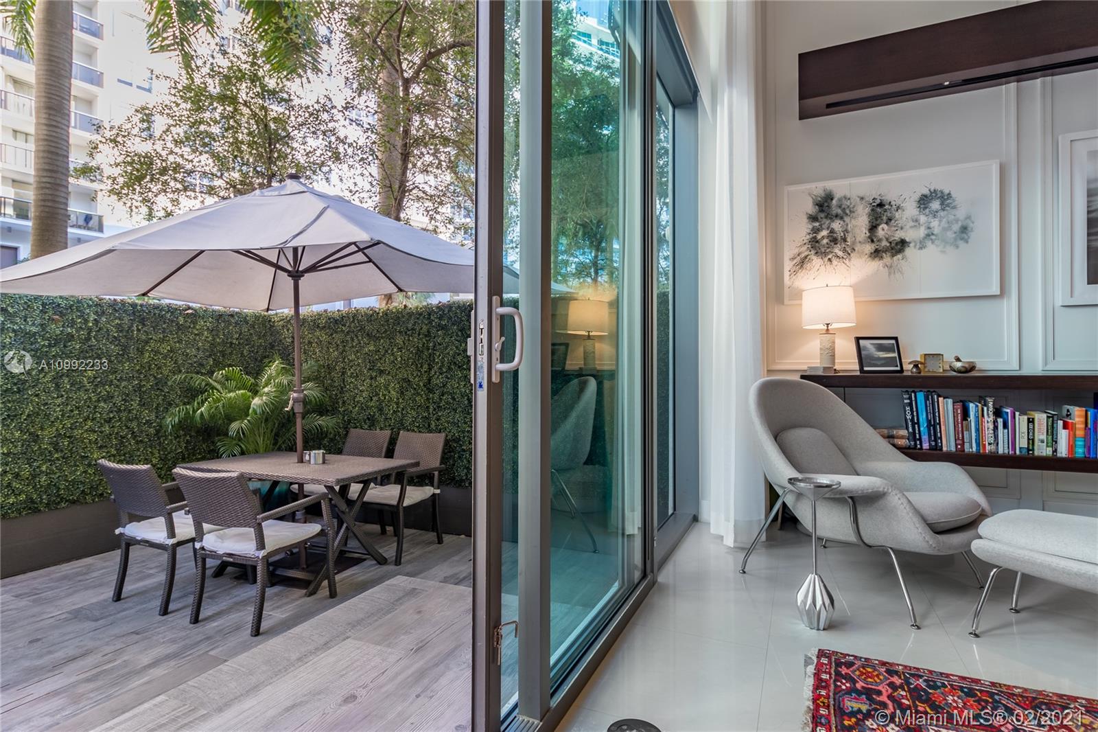 Beautiful 2 bedroom/2 bath + den home with designer upgrades including custom lighting & built-ins, hidden home theater with high definition ultra-short throw projector & custom motorized curtains/blackout shades. Natural light dazzles from the floor to ceiling windows which open to an enclosed tranquil & private patio area with custom privacy hedges & imported Italian tile. This desirable east facing home boasts 20 ft ceilings, top-of-the-line stainless steel appliances, marble floors, walk-in closets, washer/dryer, full hurricane impact windows & more! Terra Beashside Villas offers the feeling of a townhome with the convenience of a condo with luxury amenities including assigned parking, fully equipped fitness facility, a clubhouse with pool table, large heated pool & direct beach access