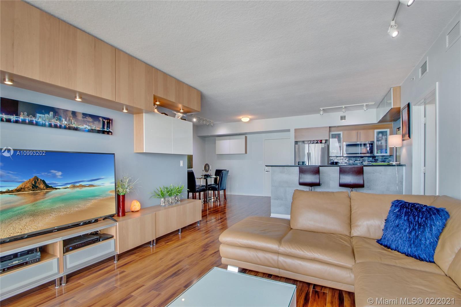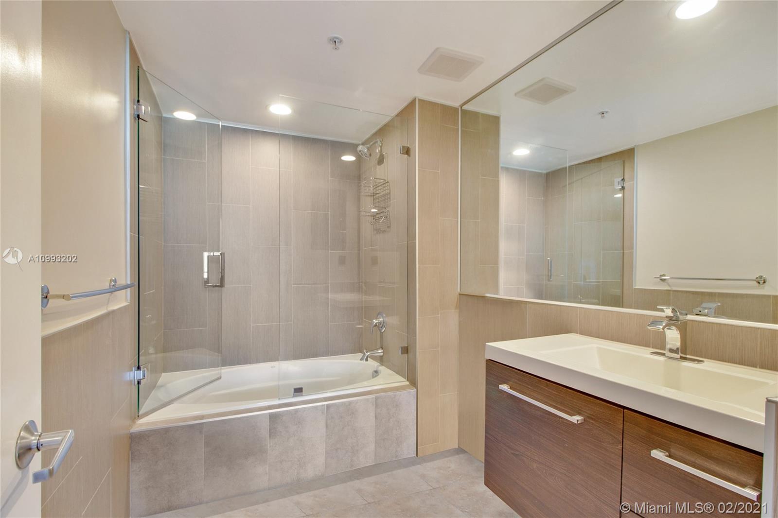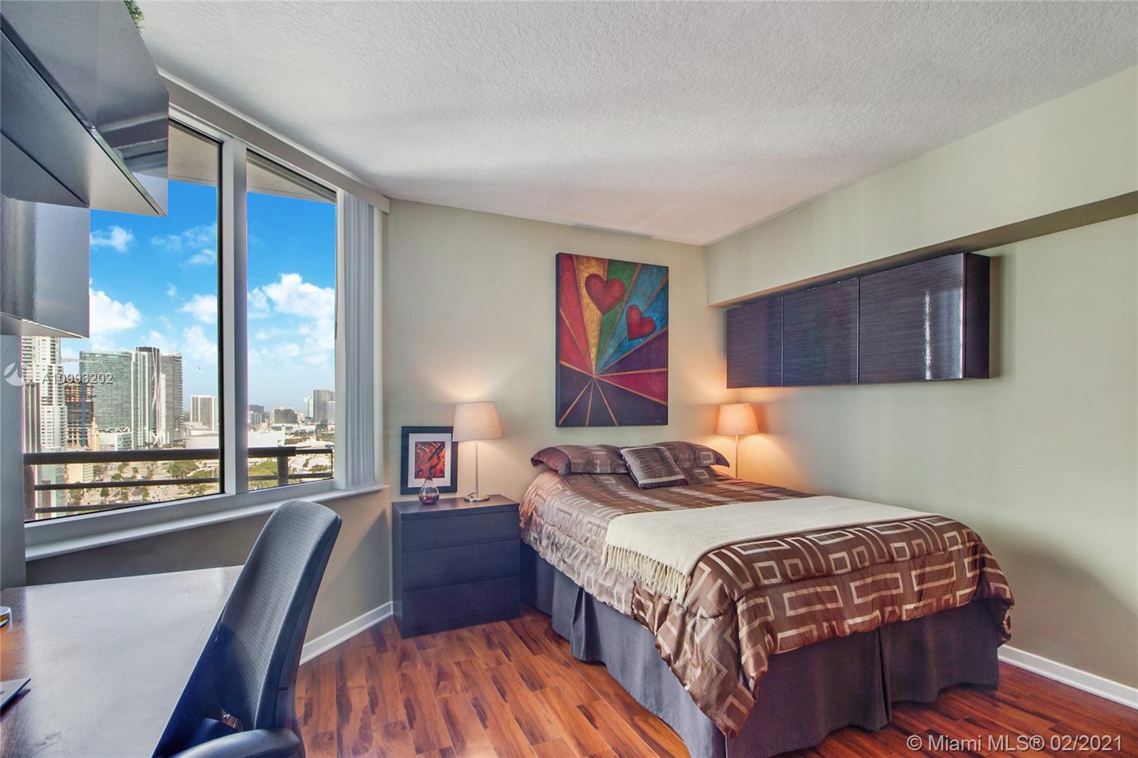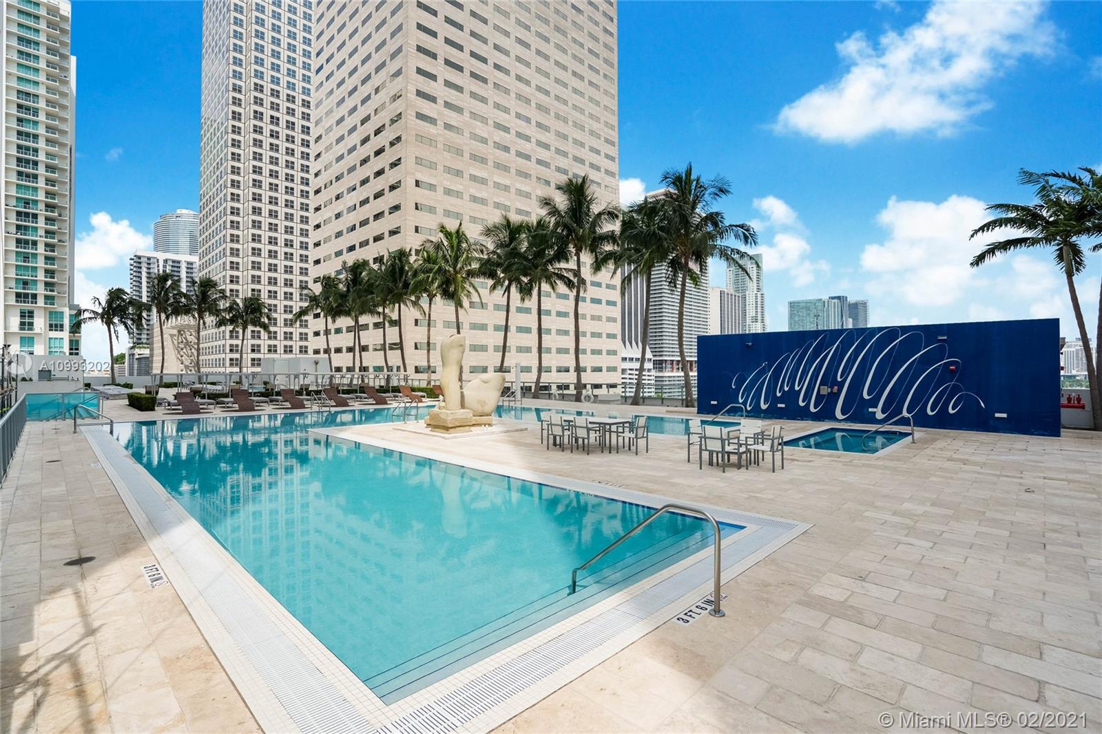 Best location in Downtown/Brickell area. Beautiful fully renovated 2 beds/2 bath unit on the 31st floor with spectacular views of Biscayne Bay and Downtown Miami. Open floor plan – best 2 bdrm layout in the building. Beautiful flooring throughout. Bedrooms are situated on opposite sides of unit, each with its own bathroom for full privacy. Bathrooms have been completely renovated. Kitchen updated with new appliances. Contemporary cabinetry added for sleek, modern look and tons of storage space. Full-service building with gated entrance and secured access. Amenities include 24 hour security, valet, parking garage, 2 swimming pools, 2 fitness centers, Jacuzzi, Sauna, waterfront Party Rooms, and Convenience Store.