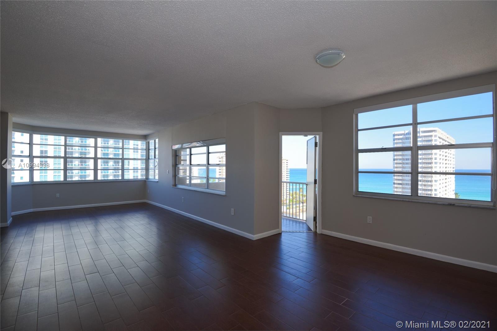 2 Br 2 Bath Spacious Corner unit *PRICED TO SELL*Water views from every room>>Clear views to the Ocean from the terrace, kitchen, dining and living room. Intracoastal view from terrace, living room and both bedrooms. What could be better? Kitchen has newer appliances and can be opened up. Porcelain floors (looks like wood) Bathrooms completely upgraded, beautifully tiled and appointed! The unit is unfurnished, spotless and ready for occupancy. Spacious, Bright, Light and Airy approx 1500 sq ft, large terrace. Large Closets, Walk in's both bedrooms. Maint inc's Internet, Cable, A/C, Hot Water ,Security, Parking plus more. Great Ocean and Intracoastal front complex>Snack Bar, Rest's/Bar/Music/Beach Service,Heated Pools,Child Play Area,Tennis,Docks,BBQ,Courtesy Bus,Salon,Mini Markets and more