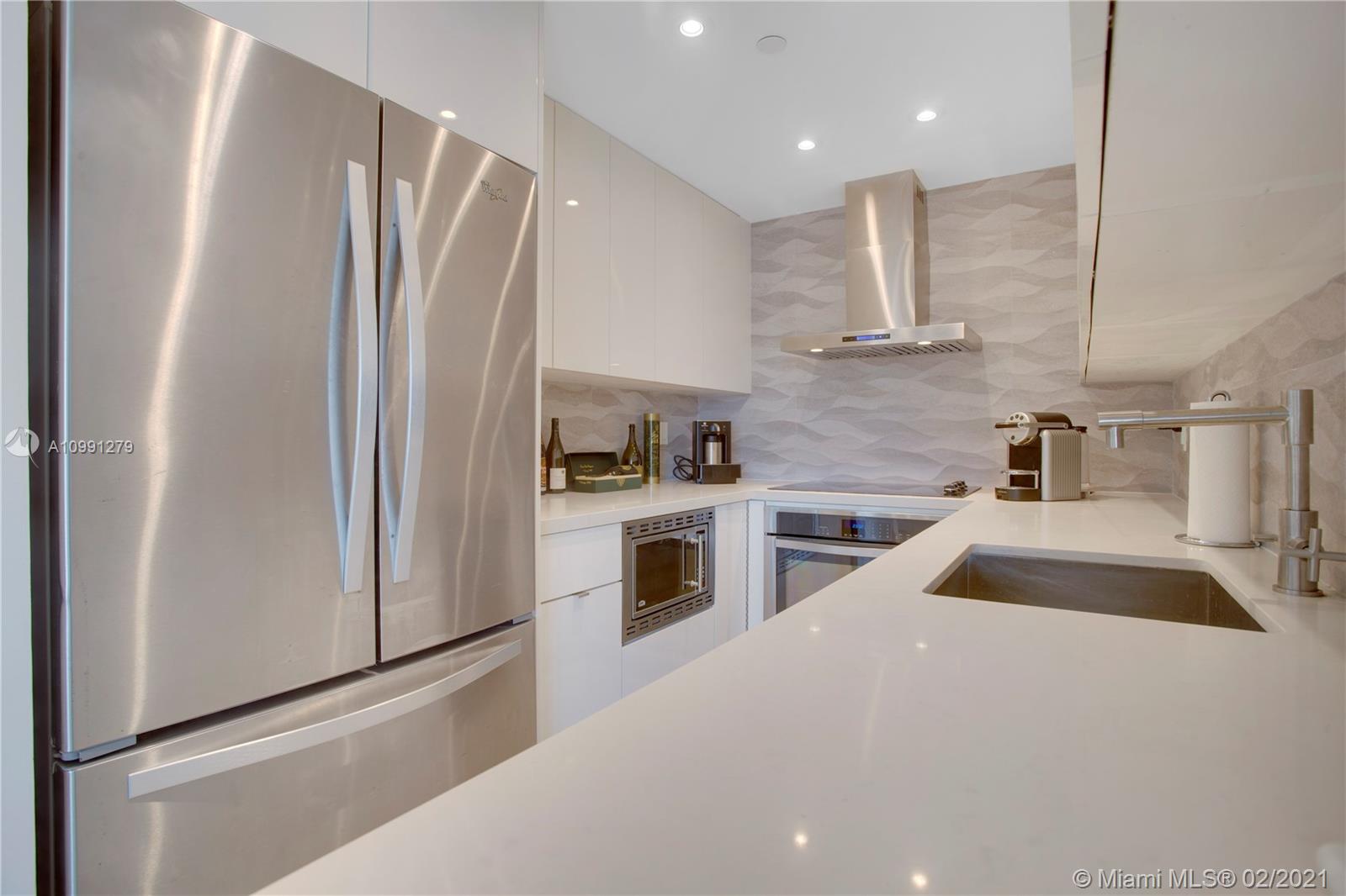 Completely renovated unit. Seller spared no expense and thought of everything! Junior 1 bedroom featuring large picture impact windows to allow maximum light. Dreamy modern kitchen w/ Gorgeous white custom Italian cabinetry, stainless steel appliances, lovely white quartz counters, modern gray backsplash, hood, wine cooler. White Custom push and soft close built in closets and cabinetry. Recessed lighting. Large custom built walk-in closet. Renovated bathroom with rain shower, gorgeous white modern pattern tile, glass encased. Unit comes with all electronics and furniture. This is a dream unit. Amenities include gorgeous bayside pool area with dramatic views of the bay and downtown Miami + state of the art fitness center. On site super market. Check out HD Video tour