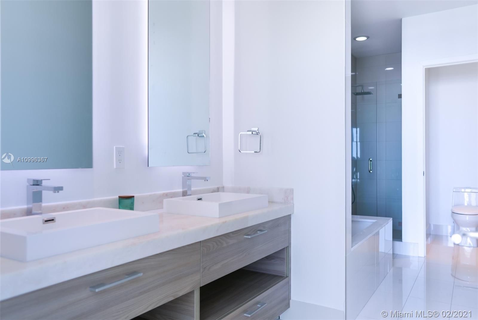 Spectacular upgraded penthouse unit at the luxury SLS Brickell. Relax in this open floor concept while enjoying the panoramic views of Miami Bay and Ocean during the day, Brickell skyline at night, & all the comfort of a 5-star hotel. Very bright corner unit with 4 beds, 3.5 baths, floor-to-ceiling glass windows, sleek wood like porcelain tile floors, california closets, custom made electric window treatments, glistening Italian marble kitchen, Bosch & Miele appliances, 2 assigned parking spaces & a huge wraparound balcony! Amenities include sky roof pool, movie theater, private party room, restaurants, bar, gym, full service spa, valet parking & concierge.