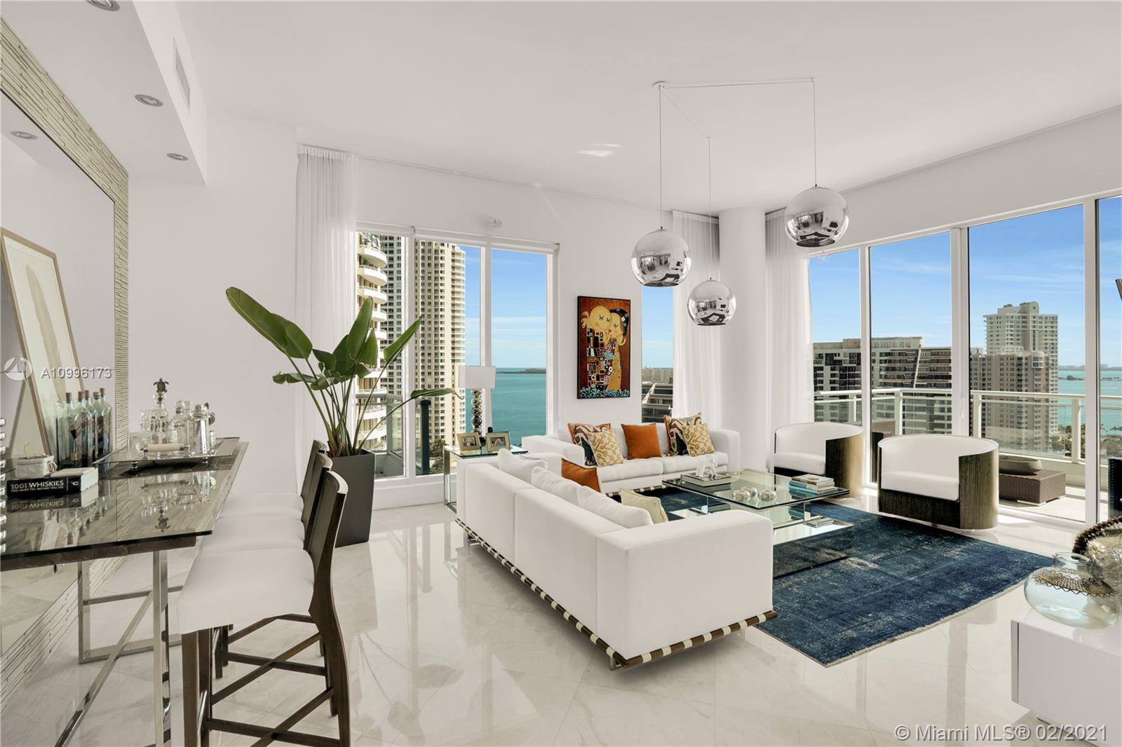 This beautiful corner residence offers a unique floor plan covering the entire southern tip of the luxurious Asia on Brickell Key! The stunning unit offers breathtaking views over the Bay, Ocean & Brickell’s skyline, features a gourmet kitchen w/ Italian countertops, ceramic cooktops, wine cooler, built-in espresso machine, Miele ovens, Subzero refrigerator & an integrated microwave. Additional high-end features are a private elevator, 12ft ceilings, marble floors, custom wall designs & 4 large terraces. This residence comes with 2 assigned parking spaces and storage. Asia offers a 24/7 Concierge, tennis & basketball courts, pool, Jacuzzi, gym and a party room. Brickell Key offers a quiet, family friendly ambience and is located at 3 min from the heart of Brickell.