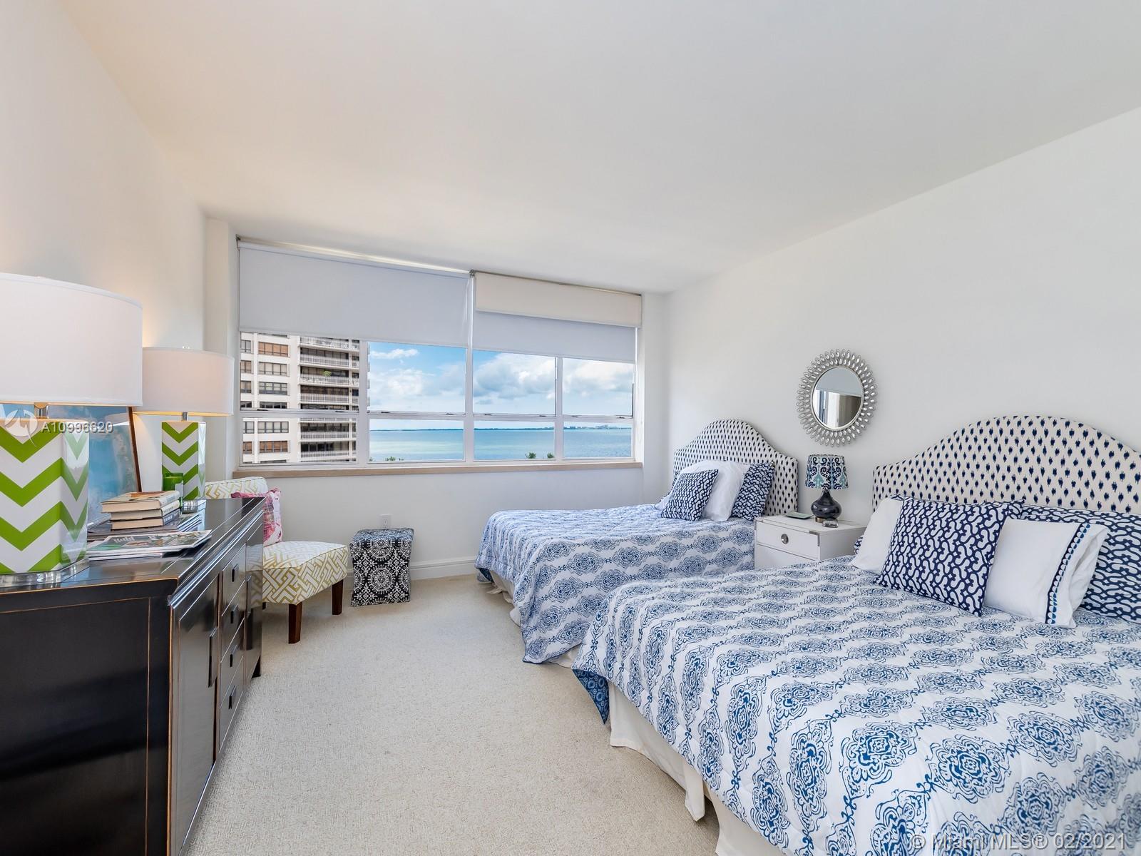 Beautifully updated and spacious corner unit 09-line 2614sq.ft, 3bd/2.5 bt Natural light floods this exceptional unit with lovely views to ocean and Miami skyline. Custom built gourmet KIT w/granite counters and center island. High- end appls, wine cooler, elegantly remodeled bathrooms and custom cabinetry throughout w/separate office. 3rd bedrm opens to living area w/pocket doors. Expansive master bdrm, with double sink vanities and oversized shower and pvt balcony. Located in gated 20 acre island w/tennis, pools, walking path.24hr sec, doorman. Walking distance to fabulous Coconut Grove village.