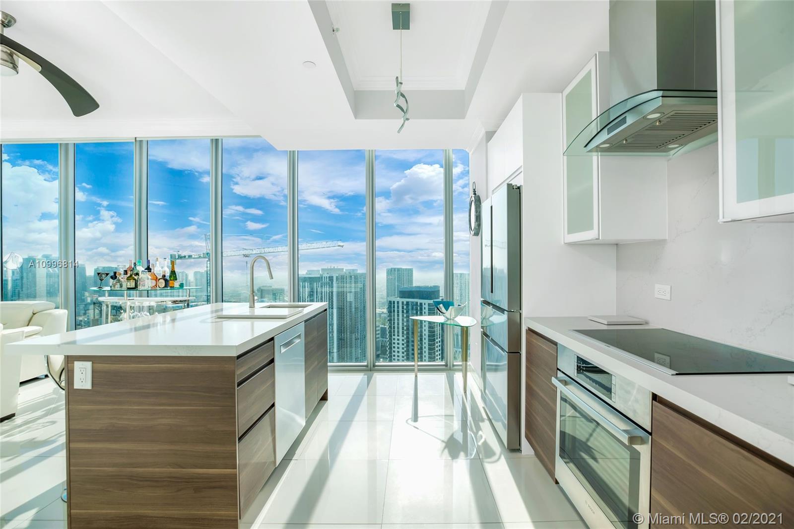 Welcome to this gorgeous condo in the 01 line of the 53rd floor of Marina Blue. This condo looks over the Miami skyline with direct ocean views of Biscayne Bay, Miami Beach, and the terrific city lights of Brickell and the Miami World Center. Line 01 is located at the southeast peak of the building, making it the most desirable in the building. This unit was completely gutted out and features newly-installed crown molding throughout. It’s equipped with a fully renovated kitchen with Bosch appliances, quartz backlash, new cabinets, one $1,500 Woodbridge toilet bidet in the master and the other bathroom has a new regular toilet, built-in closets, all-electric switches, and newly-installed custom lighting. This residence is one of a kind, you'll be proud to call this home.
