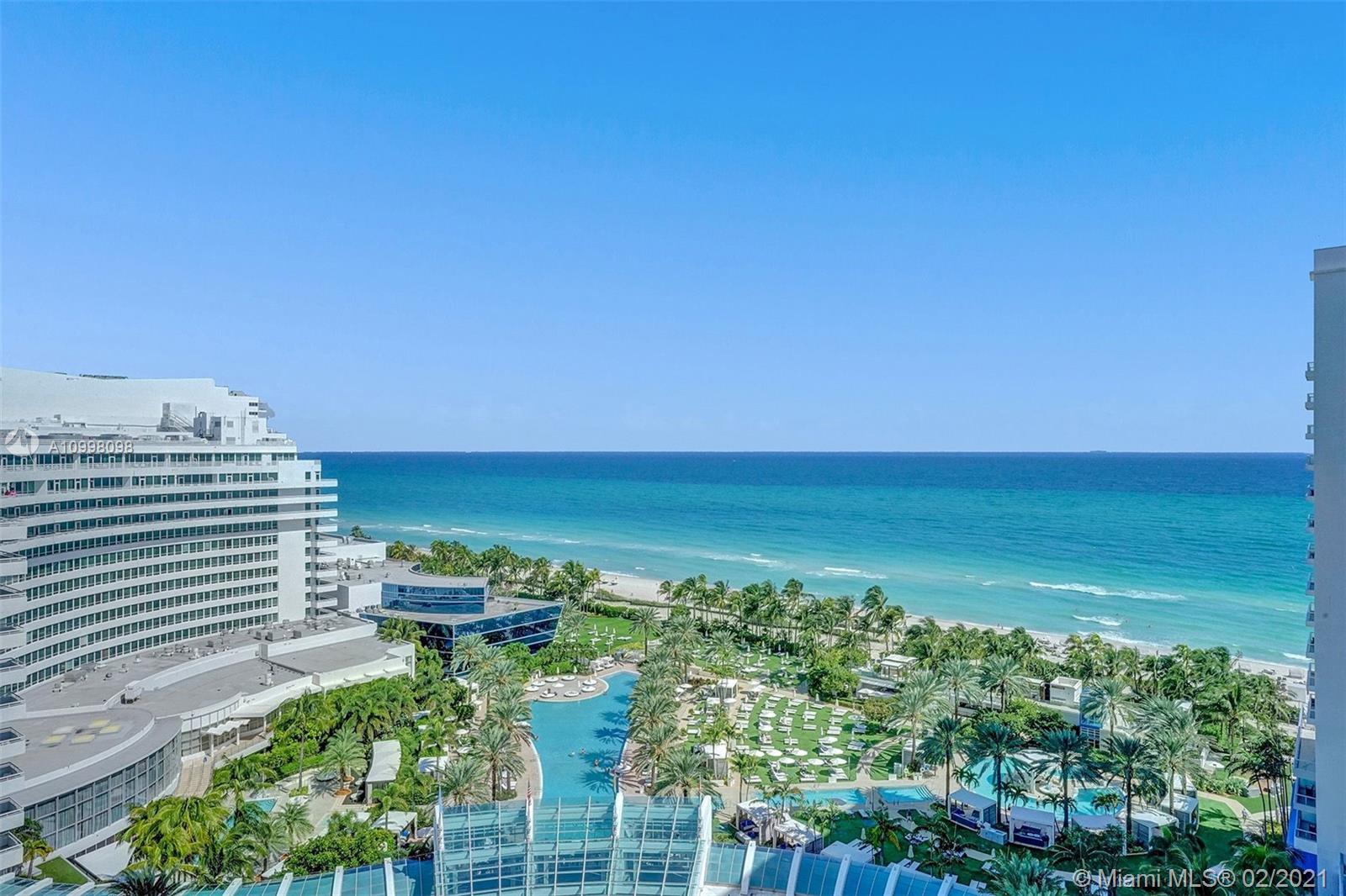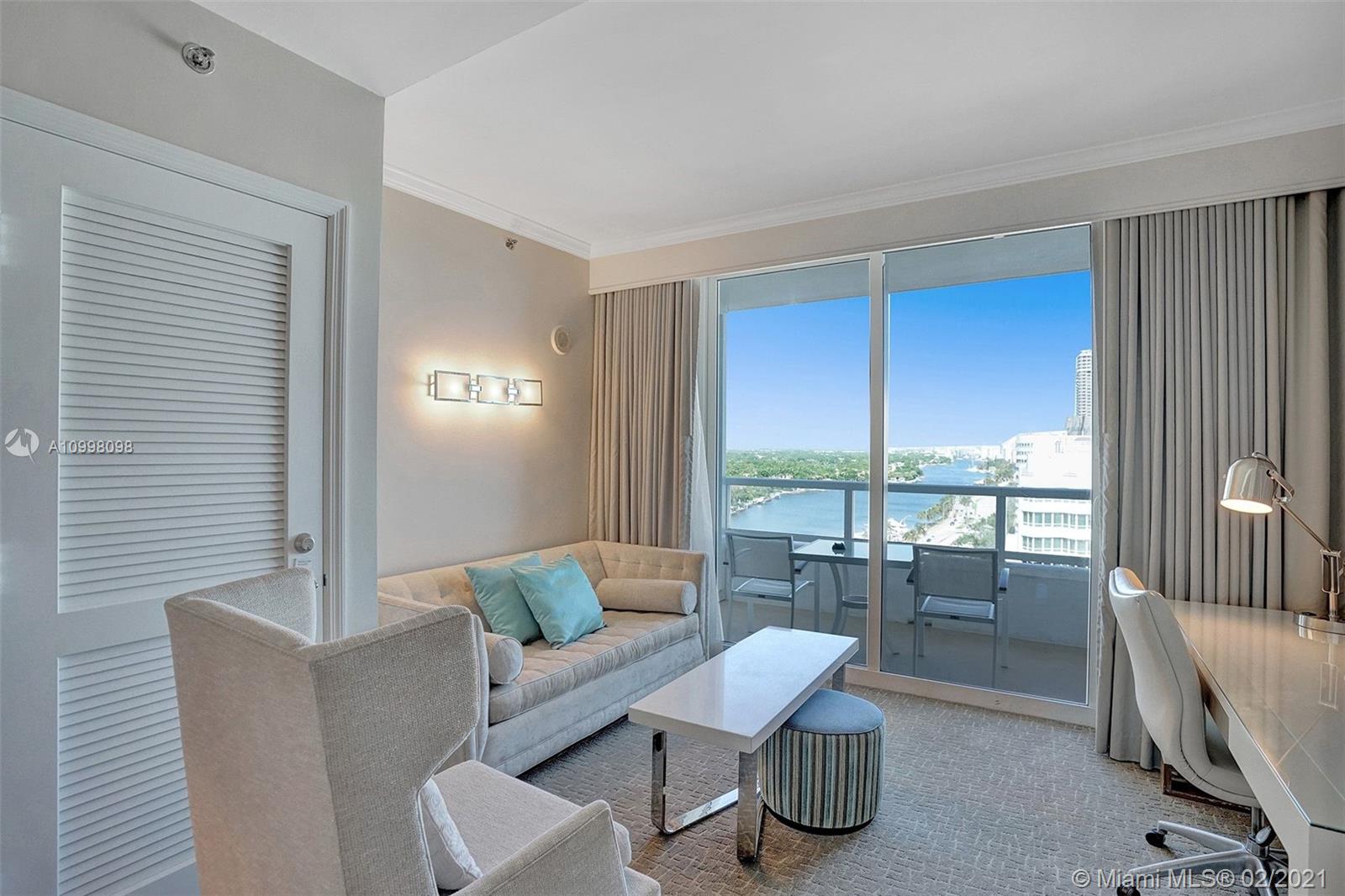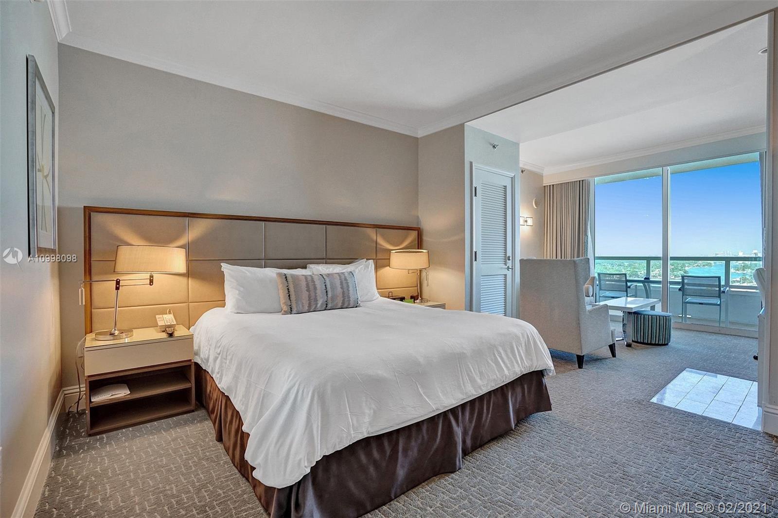 Beautiful Jr Suite w/ocean, bay & city views at Fontainebleau II. Enjoy full service, vacation-style living in a furnished turnkey unit with ample closet space and balcony. This unit comfortably sleeps four with a king bed, living area with sleeper sofa and kitchenette. Enroll in hotel rental program & receive income while away! The Fontainebleau Resort offers luxury amenities on 22 oceanfront acres including award-winning restaurants, LIV night club, Lapis spa & state-of-the-art fitness center. Maintenance includes: AC, local calls, electricity, valet + daily free breakfast in the owner’s lounge.
