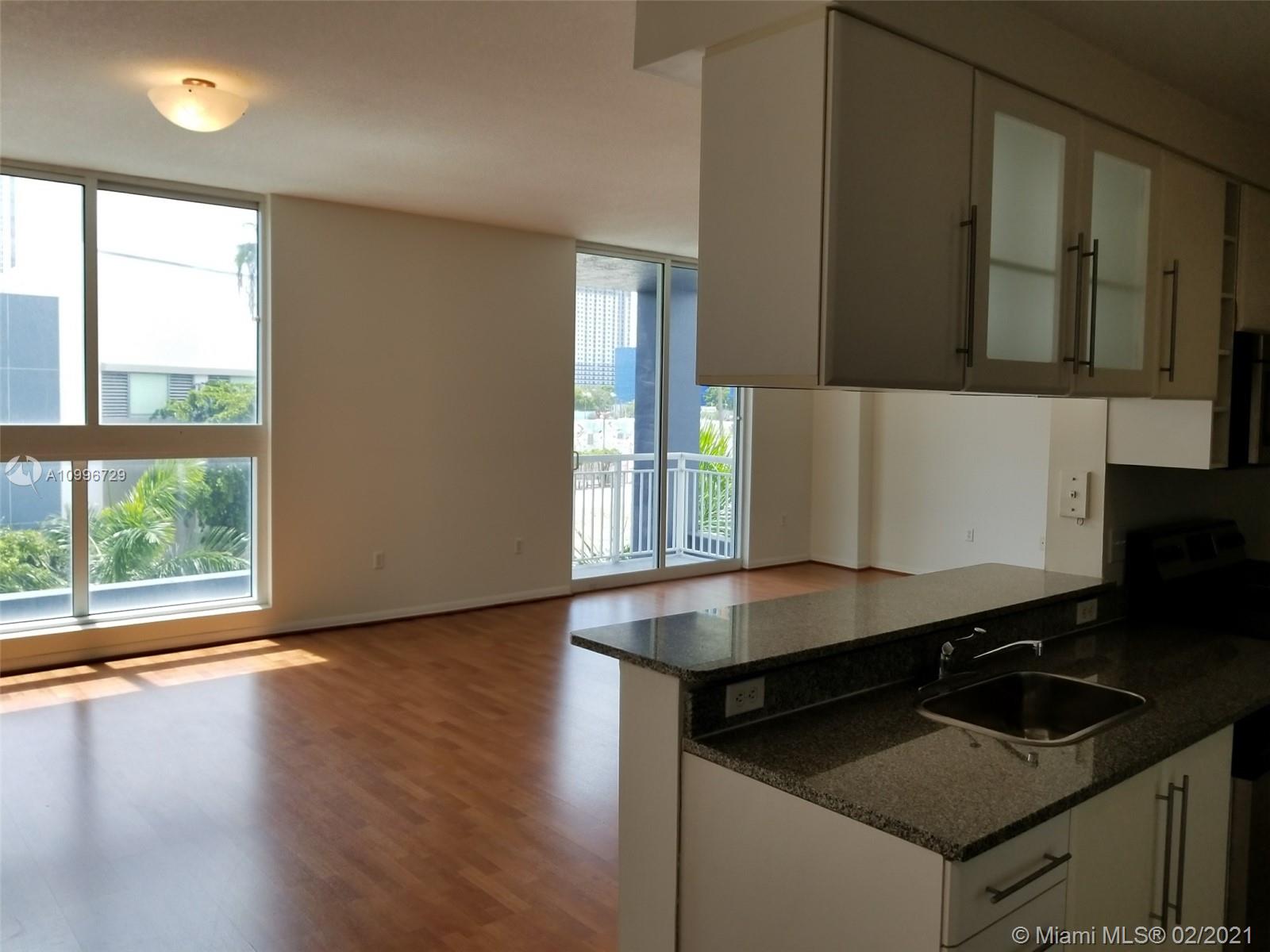 2/2 condo unit with almost 1400 SF! Unit with 2 full spacious baths and 2 bedrooms with lots of closet space, big living room/dining area with balcony and open concept kitchen. Kitchen with granite counter and washer & dryer in unit. Unit has 2 covered assigned parking spaces (in Tandem) and is centrally located to Downtown, Wynwood, Design District, and easy access to I-95. Rent right away, corporate buyers Ok.