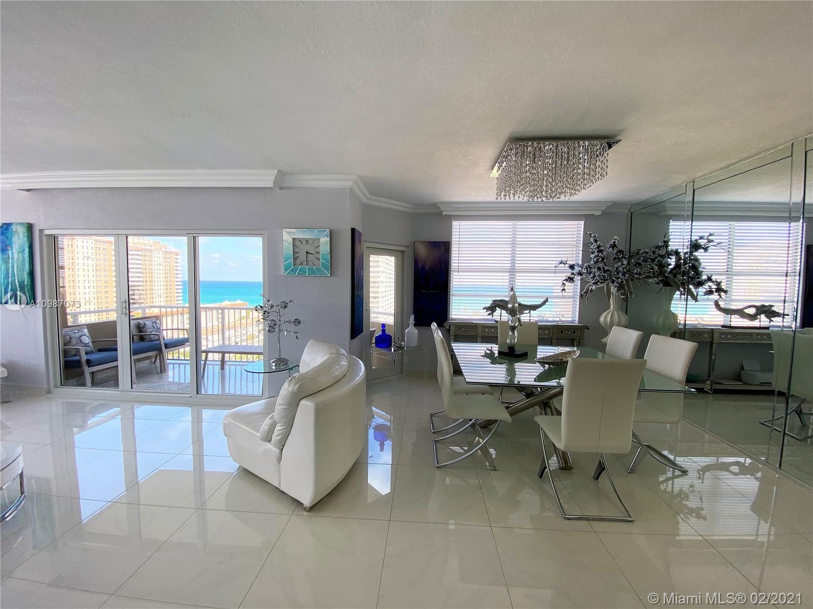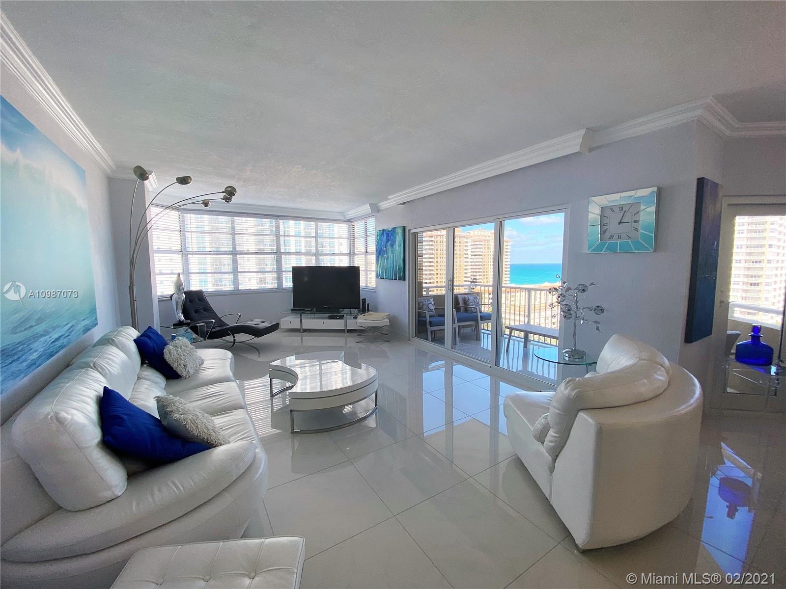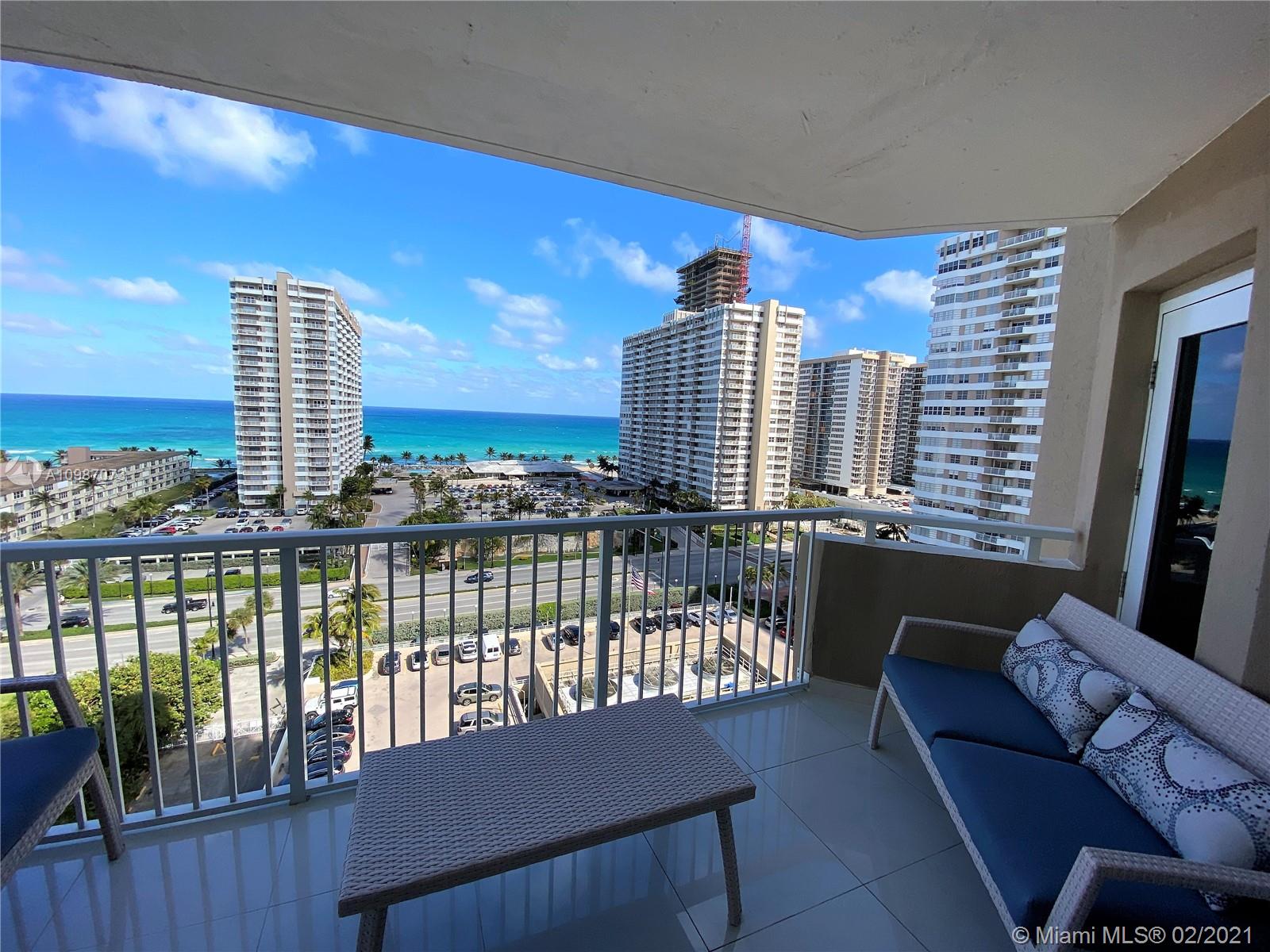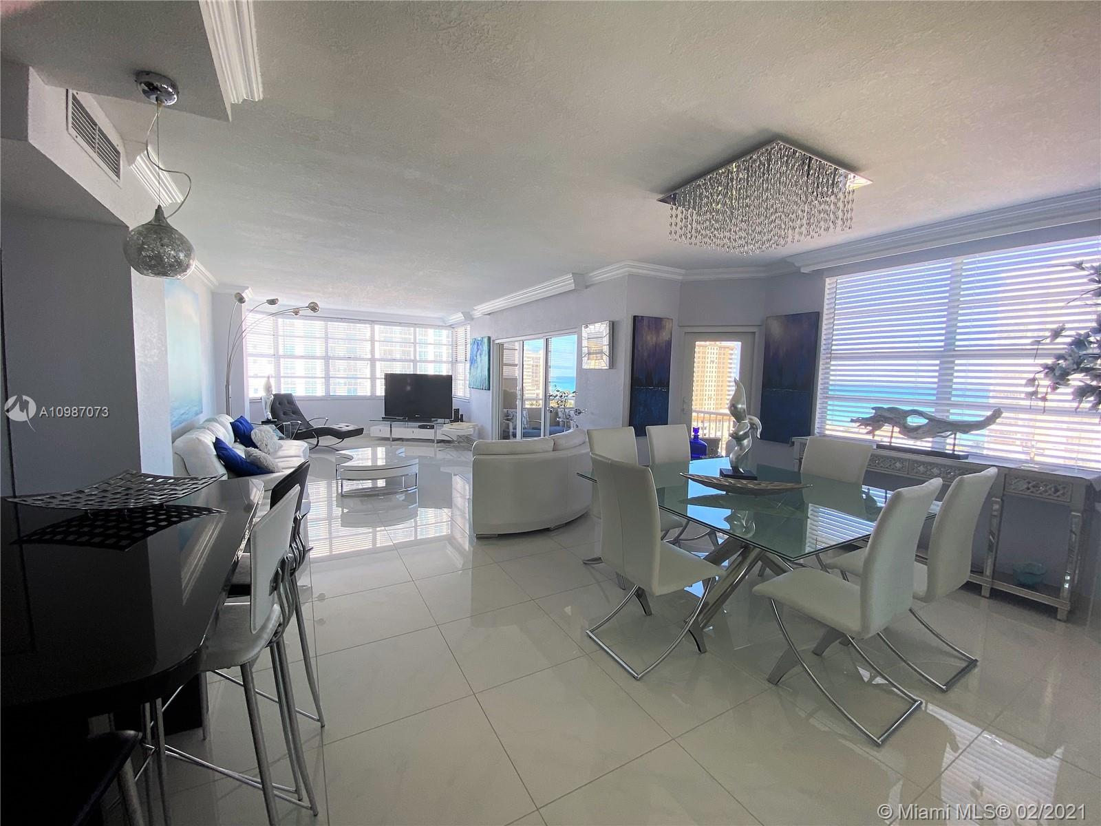 Corner unit on the ocean with spectacular views of the city, intercoastal and ocean from every room. Completely remodeled, top of the line. Resort living with 2 heated pools, 2 gyms, 3 restaurants, tennis, basketball courts, shuffle board, putting green and much more. Maintenance fee includes A/C, internet, basic cable, and all amenities. Furniture also for sale. Minutes away from Hollywood beach, Gulf Stream, Aventura Mall and major highways. Must see.